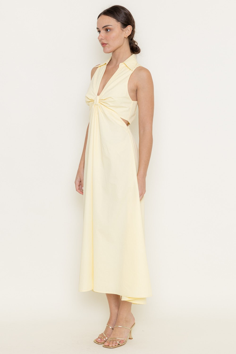 Slip into sunshine with The Kate Dress, a butter yellow maxi that's equal parts elegant and flirty. This stunner features a plunging V-neckline and daring open sides that let you show some skin while keeping things classy. Perfect for garden parties, evening events, or whenever you want to turn heads. The flowing maxi silhouette skims your curves beautifully, making you feel like the best version of yourself. Dress it up with heels and statement jewelry, or keep it casual with sandals for a breezy summer vibe.