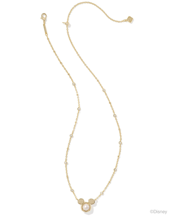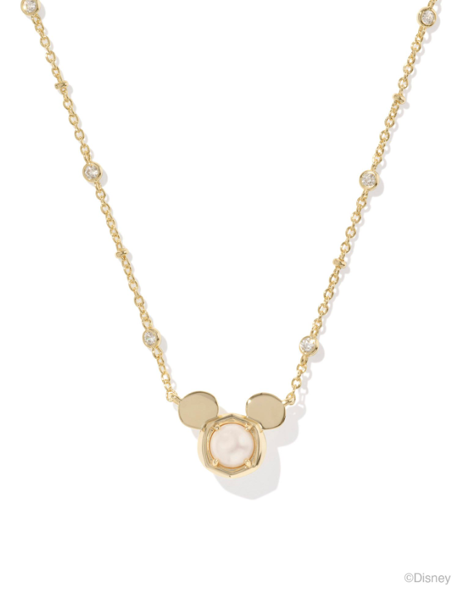 MICKEY MOUSE PENDANT NECKLACE GOLD WHITE PEARL