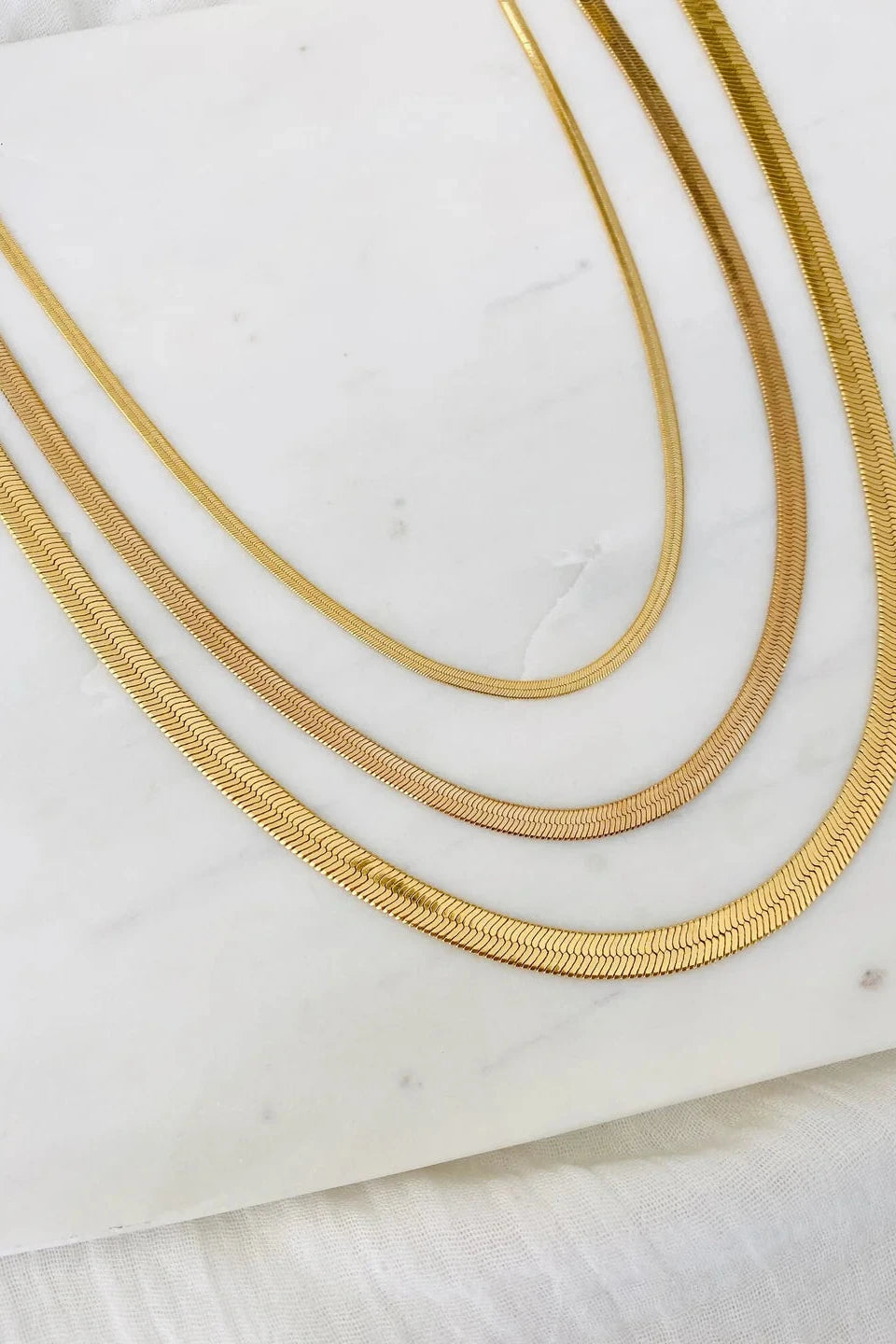 Classic herringbone chain. A staple for every stack! 17 inch necklace with 2 inch chain extender