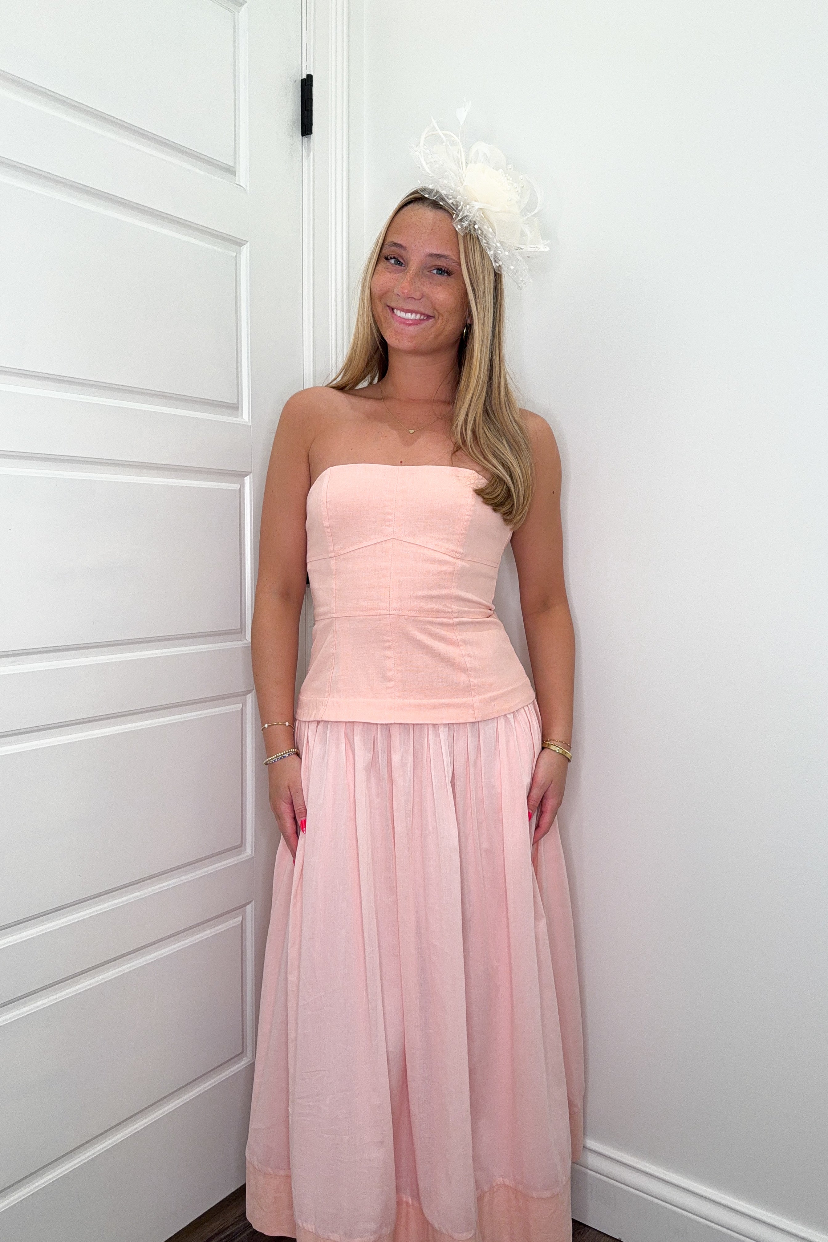 Escape into elegance with the Pink Daydream Dress, a stunning strapless design that captures romantic sophistication. Featuring a structured corset lining for flattering support and a soft pink hue that radiates femininity, this dress transitions seamlessly from special occasions to upscale events. The refined silhouette and quality construction make it a versatile addition to any wardrobe.