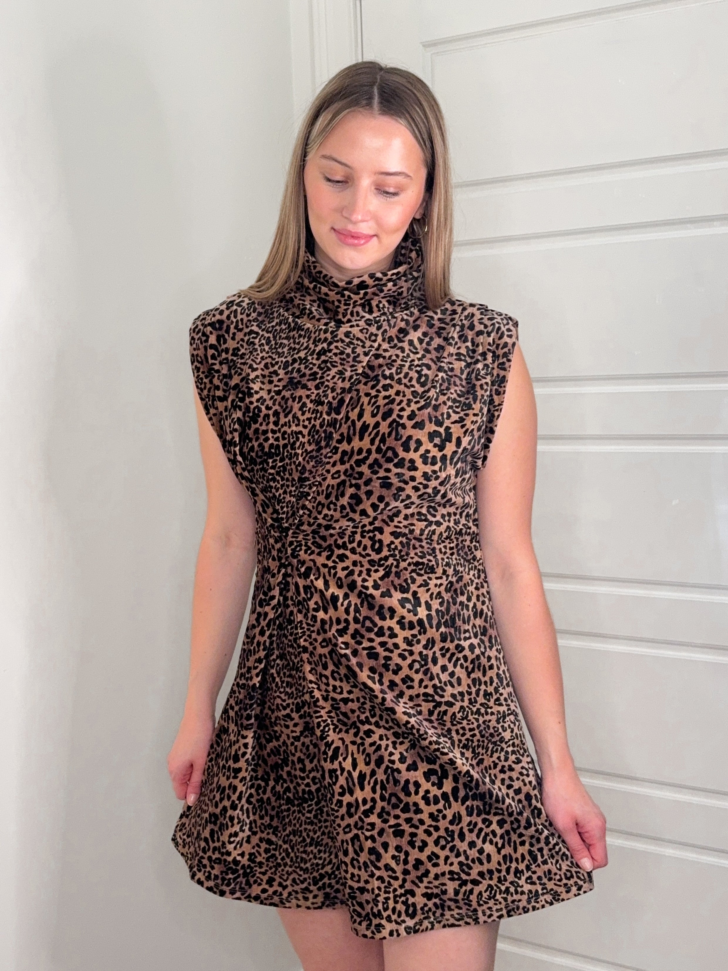 Unleash your wild side in this cheetah-print suede dress! The Running Wild Dress features a bold, spotted pattern that commands attention, paired with a sleek sleeveless silhouette perfect for showing off your confidence. Crafted from soft suede, this short dress delivers both comfort and edge—ideal for nights out, parties, or whenever you want to make a statement. Versatile enough to dress up or down, it's the perfect piece for anyone ready to break free from the ordinary.