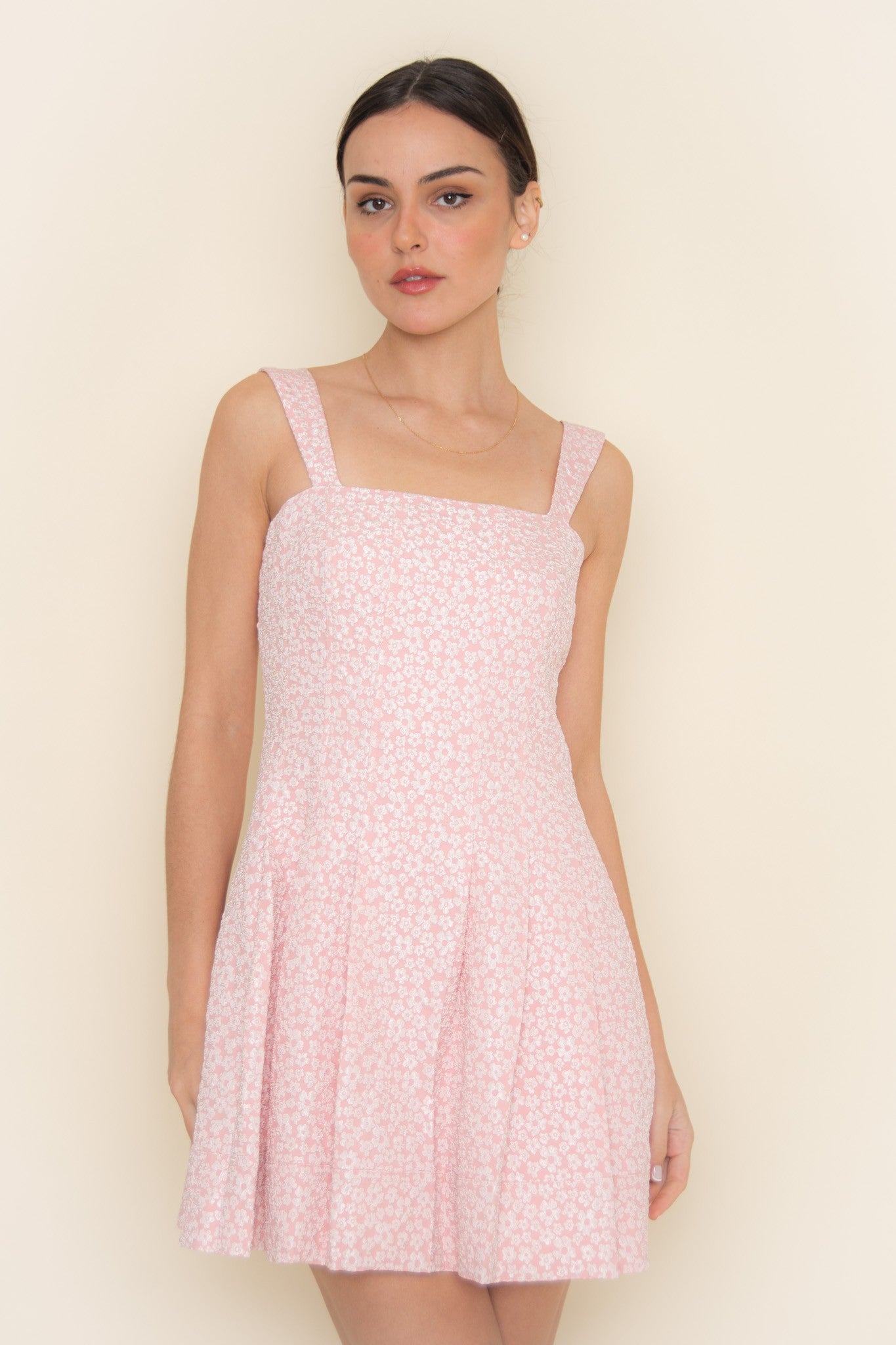 The Sweet Blossom Dress brings a playful charm with its delicate baby pink hue and cheerful white floral pattern. Designed with breezy tank top straps and a fun, short length, it’s perfect for twirling through sunny days and capturing sweet moments. Light, lively, and effortlessly cute, this dress is a delightful addition to any joyful wardrobe.