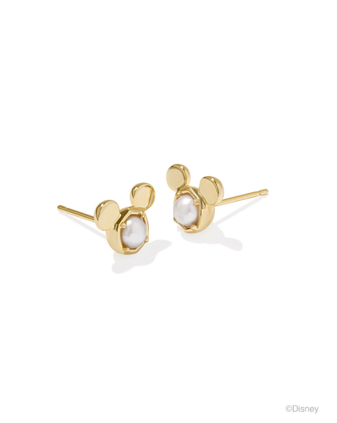 MICKEY MOUSE STUD EARRINGS GOLD WHITE PEARL