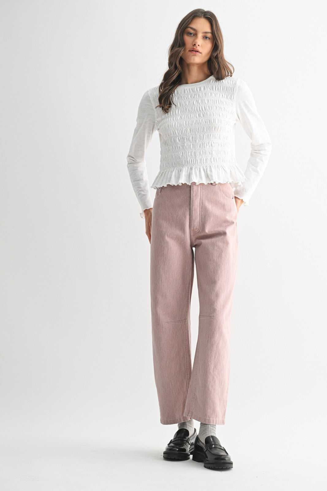 Cozy up in our Winter Lodge Top, a charming long-sleeve essential that brings effortless elegance to your cold-weather wardrobe. Featuring delicate smocking details across the bodice, this crisp white top layers beautifully over your favorite tees or stands alone as a polished statement piece. The relaxed fit and soft fabric make it perfect for everything from fireside gatherings to casual weekend adventures. Embrace that lodge-inspired aesthetic with a top that's as comfortable as it is chic.