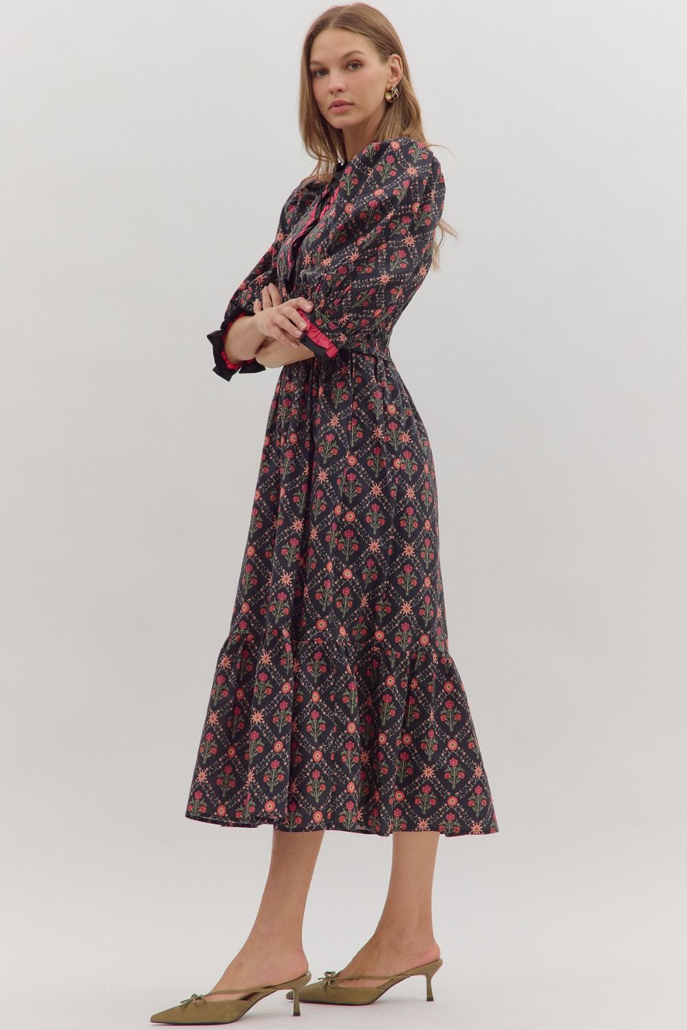 Step into autumn with the Falling Into The Season Dress, a charming midi-length piece with playful 3/4 sleeves. Offered in elegant black or fresh green, it features a delightful floral print that captures the spirit of the season. Perfect for twirling through crisp leaves or cozy gatherings, this dress brings effortless style and seasonal joy to your wardrobe.