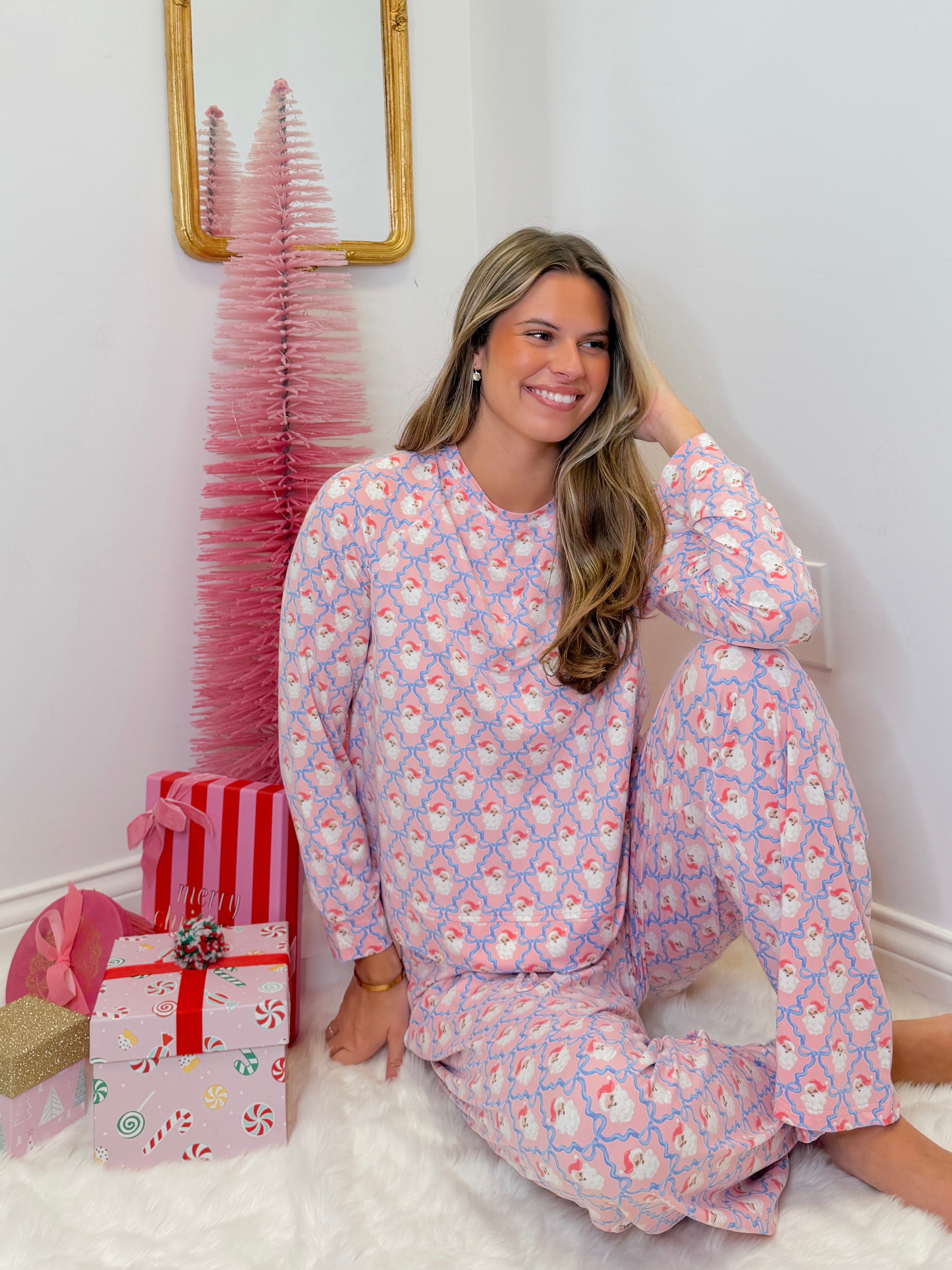 Get cozy and festive with the Annie Santa Baby Bow Pajamas! Featuring a playful pink and blue pattern adorned with cheerful Santa faces and cute bows, these pajamas bring holiday cheer to bedtime. Soft and comfy, they’re perfect for little ones to snuggle up in while dreaming of sugarplums and holiday magic.