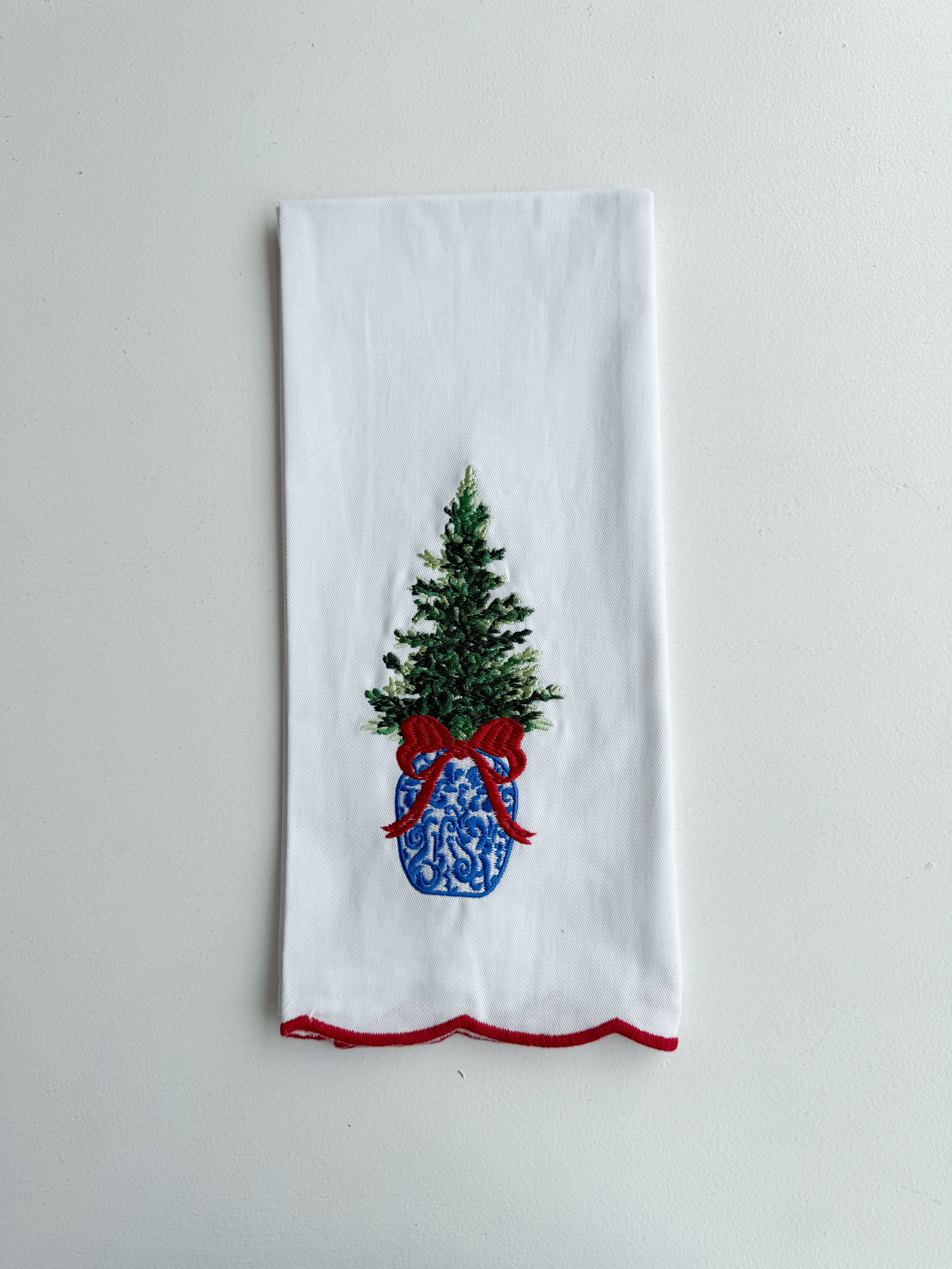 Celebrate the season with our playful Christmas Chinoiserie Tea Towels. Choose between a charming design featuring a single elegant Chinoiserie tree or a festive scene with two trees and a cheerful nutcracker. Made to brighten your kitchen while keeping it tidy, these tea towels bring holiday cheer and style to every dish-drying moment.