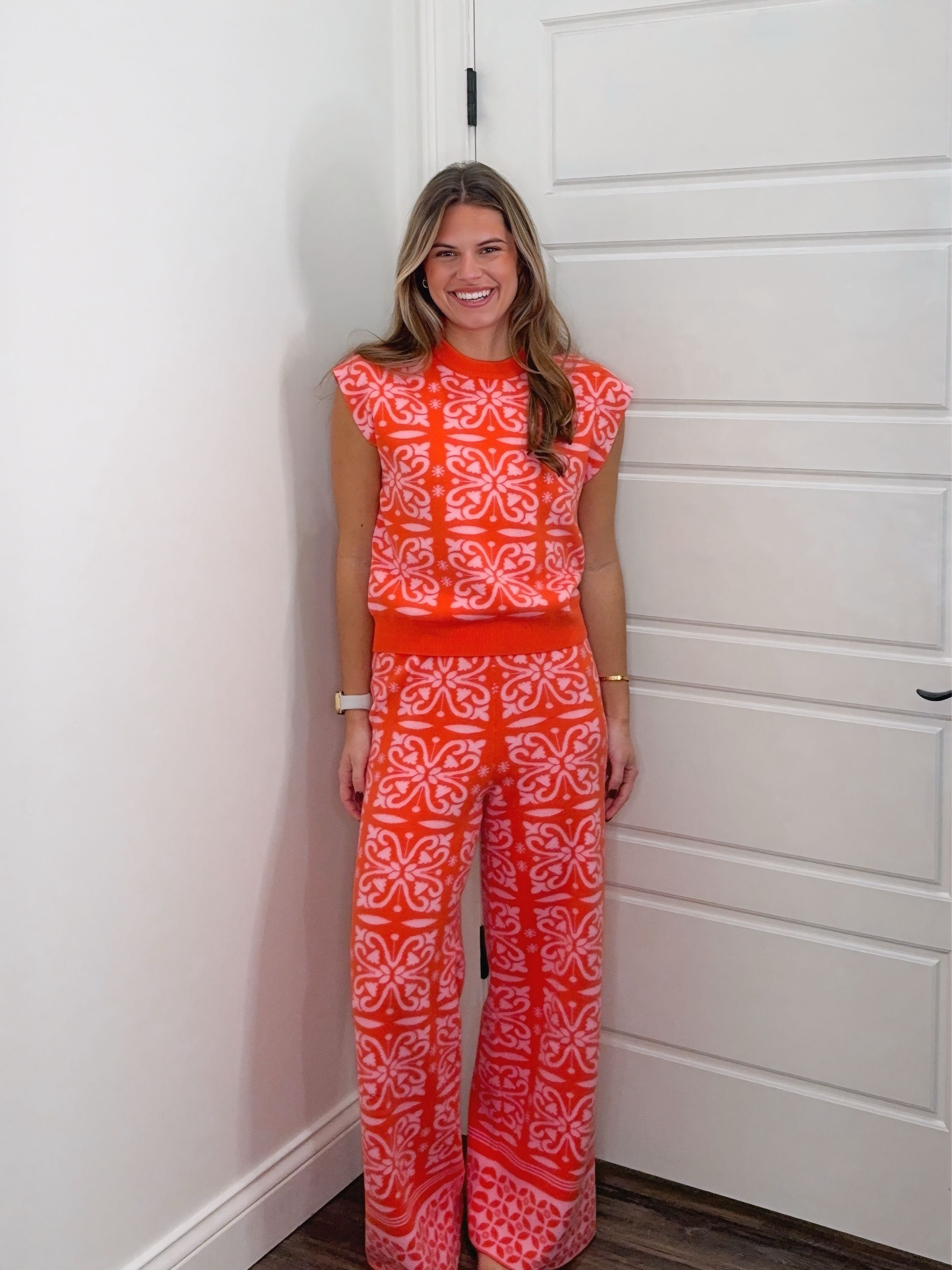 Bloom into style with our Coral Garden Knit Set, where vibrant florals meet cozy comfort. This charming two-piece features a delightful mix of orange and soft pink hues woven throughout, creating a garden-inspired pattern that's impossible to resist. Perfect for layering or wearing separately, this versatile set brings warmth and whimsy to your everyday wardrobe. Whether you're heading out for brunch or settling in for a relaxed weekend, let these cheerful colors and soft knit fabric brighten your day.