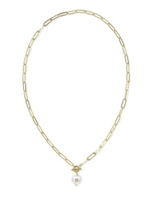 The Sasha Gold Heart Link and Chain Necklace gives pearls a major (and adorable) update. Featuring a heart-shaped freshwater cultured pearl with a metallic beauty mark on a toggle closure paperclip chain, this trend-forward necklace will become a unique and lovely piece for your collection.