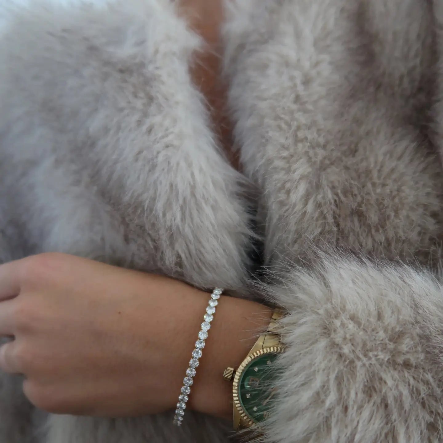 Our Stretchy Tennis Bracelet is the epitome of style and durability. Crafted with a design that is water-resistant, it's perfect for wear. The stretchy build ensures a comfortable fit for all!