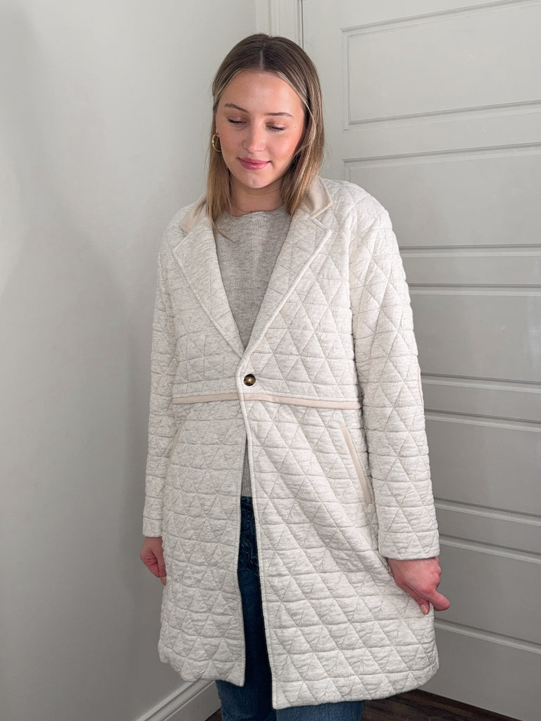 Wrap yourself in cozy vibes with our Total Comfort Quilt Jacket! This light grey quilted beauty is your new best friend for those crisp autumn days and chilly evenings. The classic quilt pattern adds timeless charm while keeping you warm and toasty. Perfect for layering over your favorite outfits, it's the jacket that says "comfort is my priority" without sacrificing style. Whether you're running errands or settling in for a relaxed weekend, this quilted wonder has your back—literally!