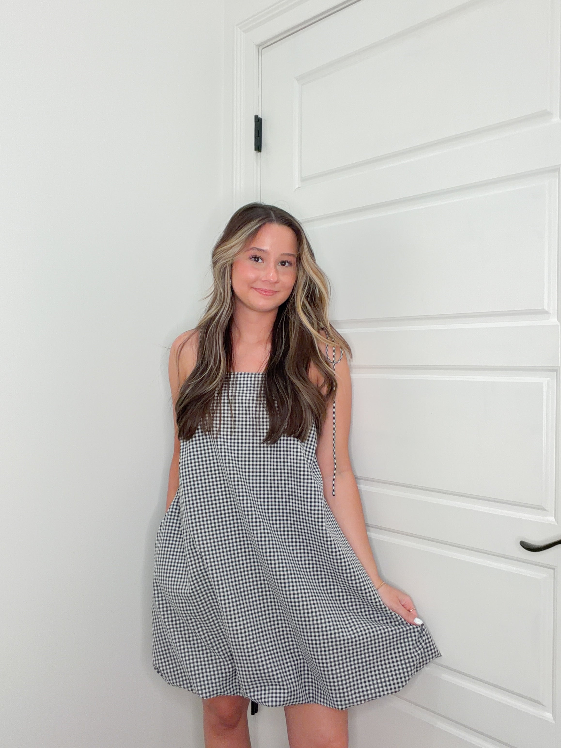 Checkpoint Short Dress Playful gingham meets effortless style in this black and white checked mini. Featuring delicate spaghetti straps and a flattering short silhouette, it's the perfect pick for casual outings, weekend brunches, or spontaneous adventures. The classic gingham pattern adds a timeless touch while keeping things fun and fresh. Dress it up with heels or keep it cool with sneakers—this versatile piece transitions seamlessly from day to night.