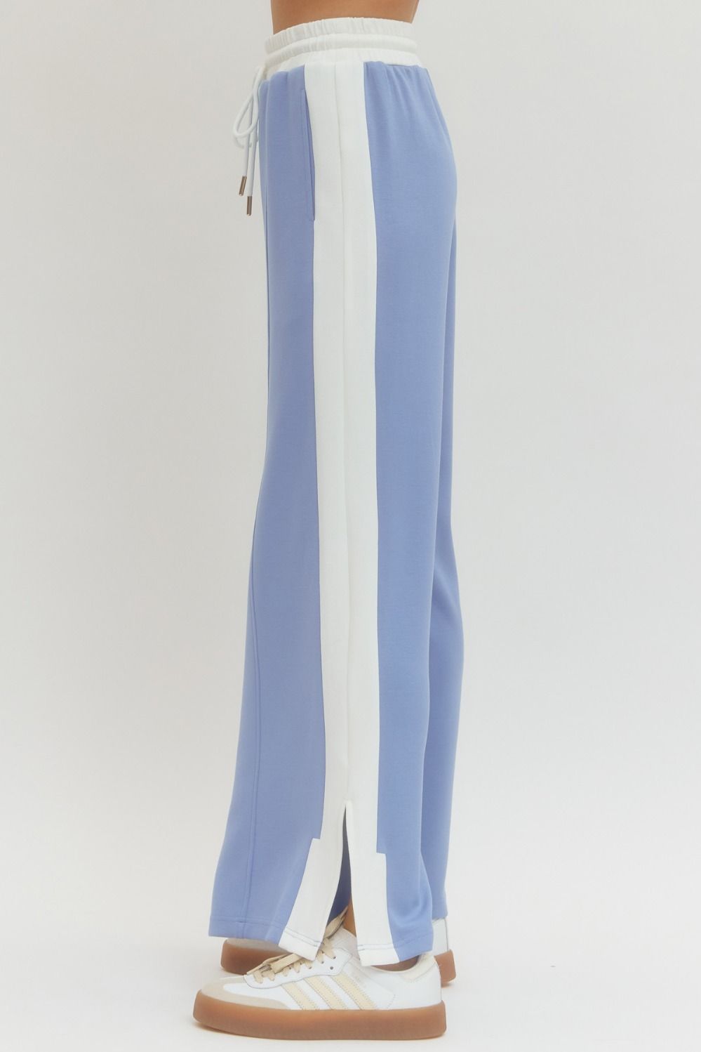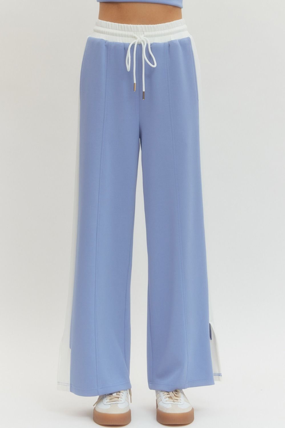 Drift into comfort with our Cloud Nine Set, where soft baby blue meets crisp white in the perfect pairing. This playful two-piece features a short-sleeve v-neck top paired with drawstring pants complete with a handy pocket. Mix and match each piece separately to create your ideal look. Lightweight and cozy, it's the set that lets you stay true to your style while keeping things breezy and fun.