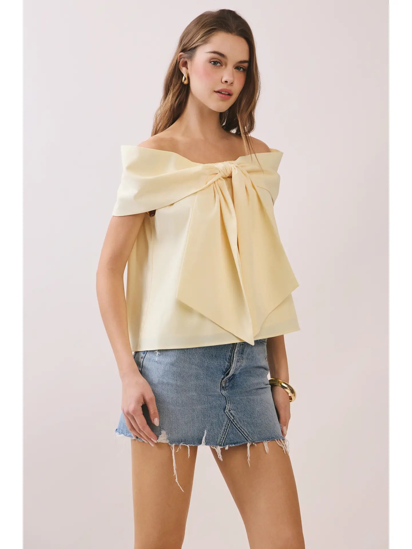 Brighten your wardrobe with this cheerful strapless top featuring a charming bow detail at the front. The sunny yellow hue brings instant joy to any outfit, while the sleek strapless design offers a modern, versatile look perfect for casual outings or dressed-up occasions. The playful bow accent adds a touch of personality and feminine flair. Whether you're heading to brunch or a night out, this Lemon Drop Bow Top is your go-to piece for effortless style with a fun twist.