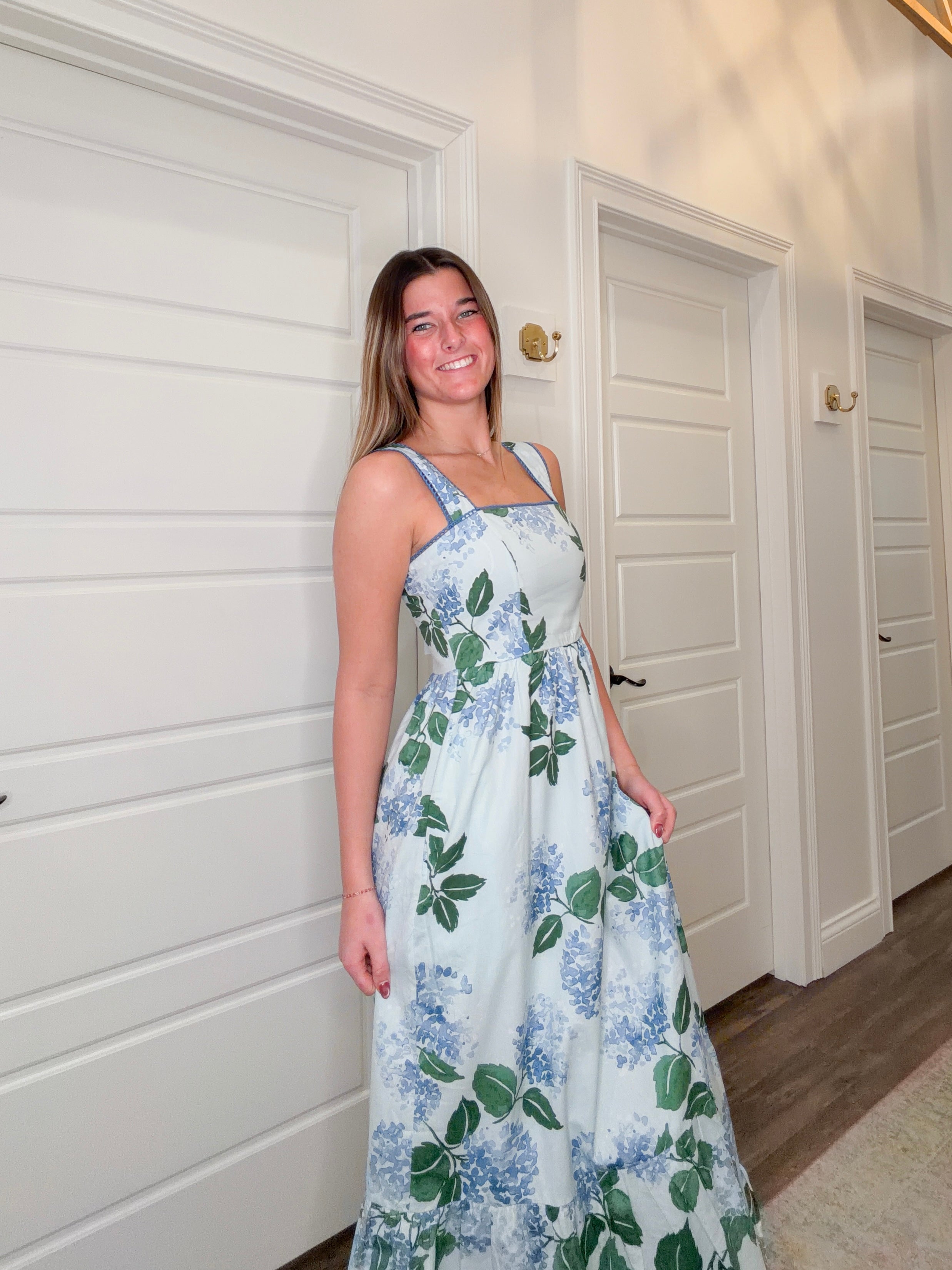Slip into effortless elegance with the Mirla Floral Sleeveless Maxi Dress. This breezy tank-style maxi features a charming light blue base adorned with delicate hydrangea blooms that bring garden-fresh beauty to your wardrobe. Perfect for warm-weather adventures, garden parties, or casual outings, this dress moves with you while keeping you cool and comfortable. The sleeveless design and flowing silhouette make it an ideal choice for layering or wearing solo. Embrace your inner flower child with this whimsical, wearable work of art.