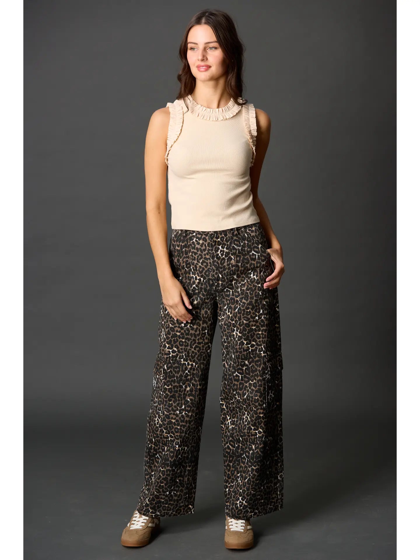 Discover effortless elegance with The Latte Ruffle Top, a sleeveless essential crafted from breathable poplin fabric. Delicate ruffled detailing and contrast ribbed accents create dimension and visual appeal, while the warm latte tone complements any complexion. Versatile enough for layering or standalone wear, this piece moves seamlessly from weekend casual to office-ready polish. The structured design and premium fabric ensure all-day comfort and durability, making it a timeless wardrobe staple you'll reach for again and again.