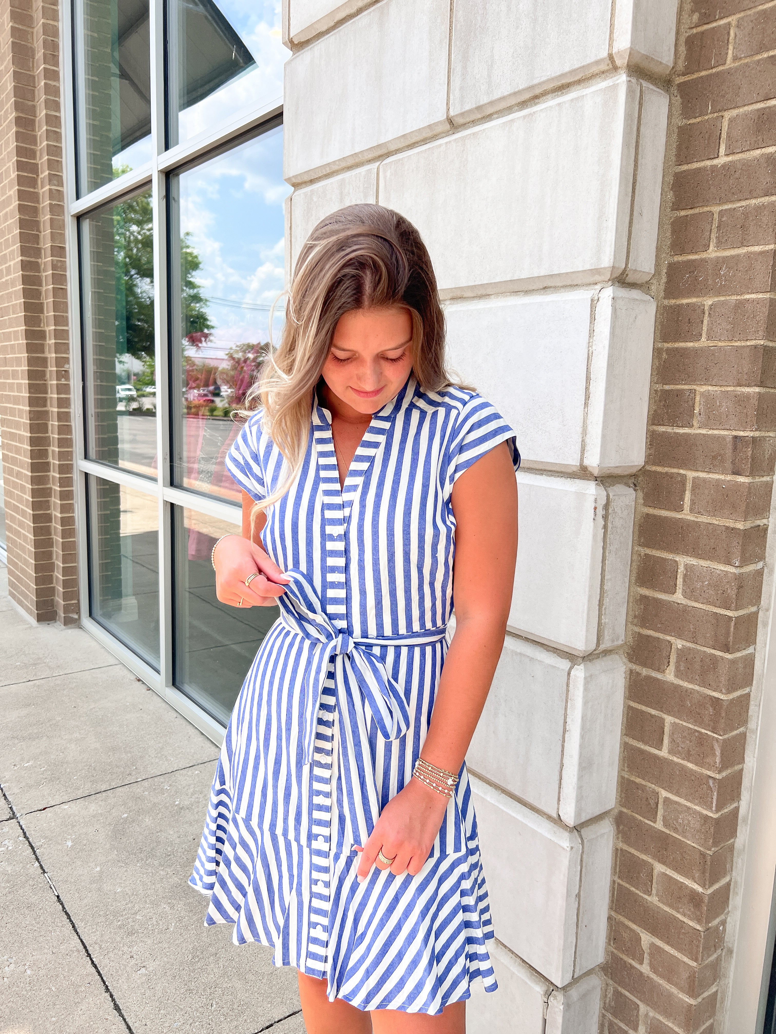Add some playfulness to your wardrobe with the Babette Striped Shirt Mini Dress! This fun and quirky dress features a playful striped print that will surely make a statement. With its comfortable and stylish design, you'll feel confident and trendy while wearing it out and about. Perfect for any casual occasion, this dress will be a staple in your closet.