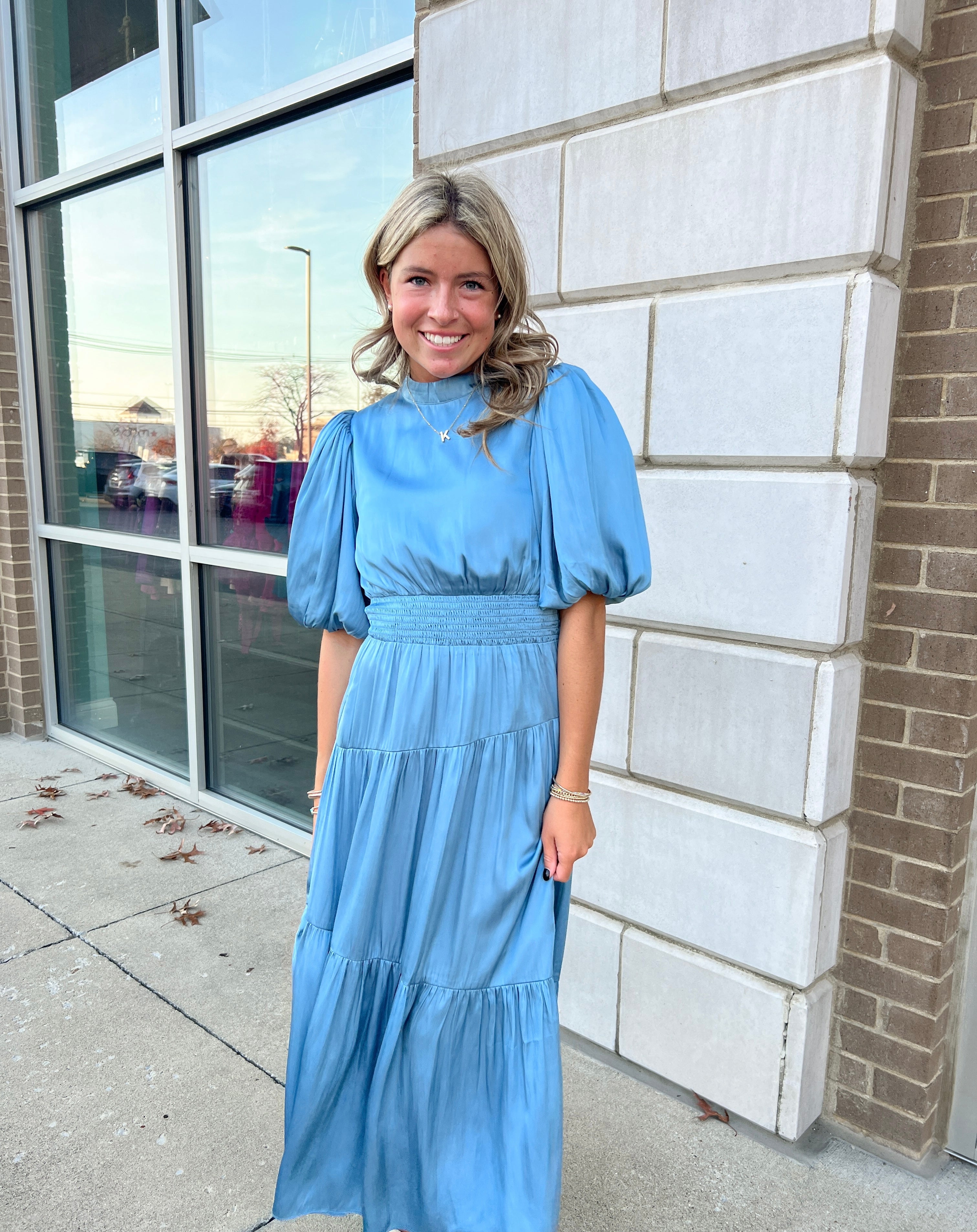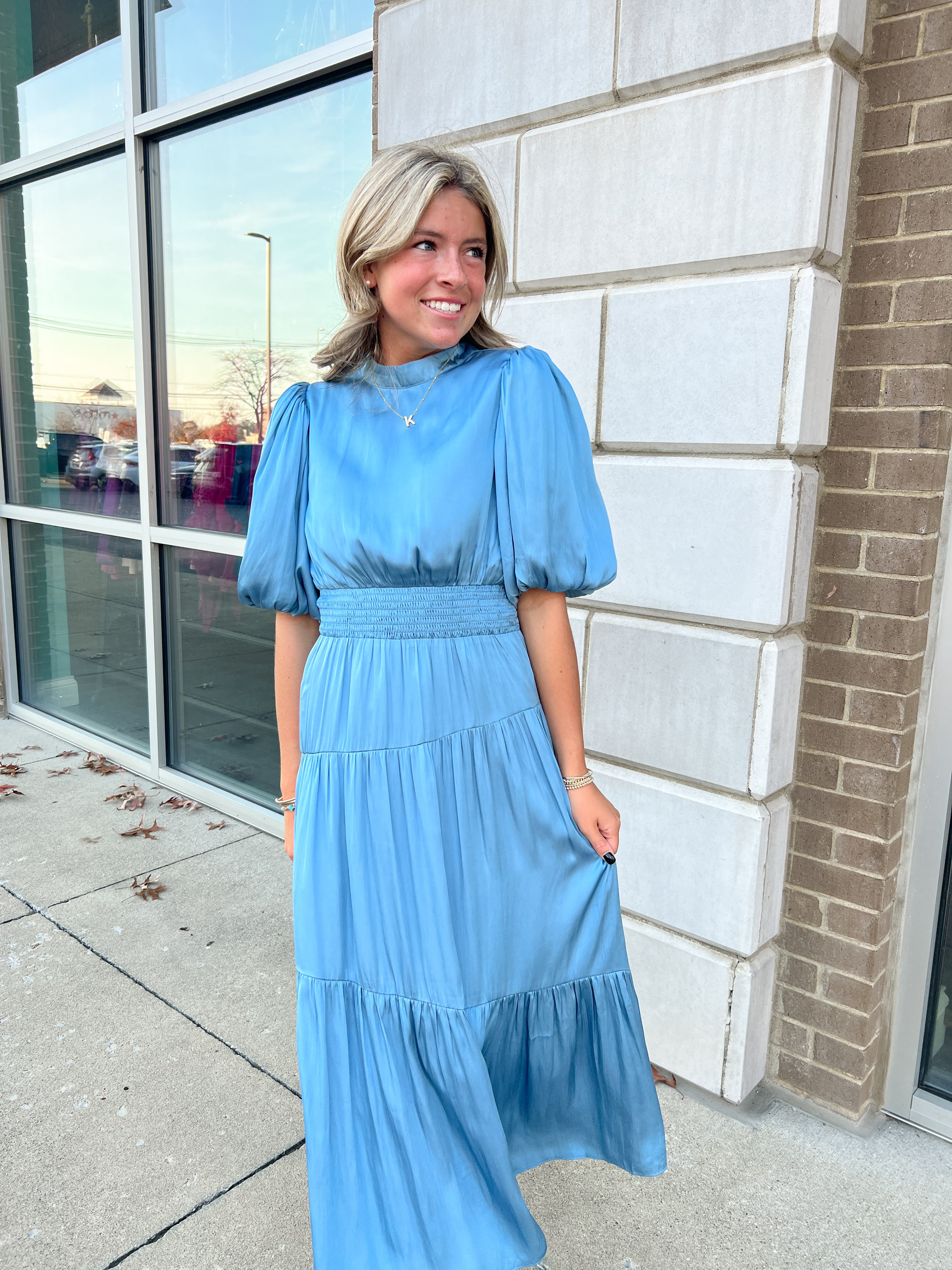 Look your best for any formal occasion in a glamorous maxi satin dress. Get ready to turn heads with a puff sleeve and cinched waist, creating a classic look with a modern twist.