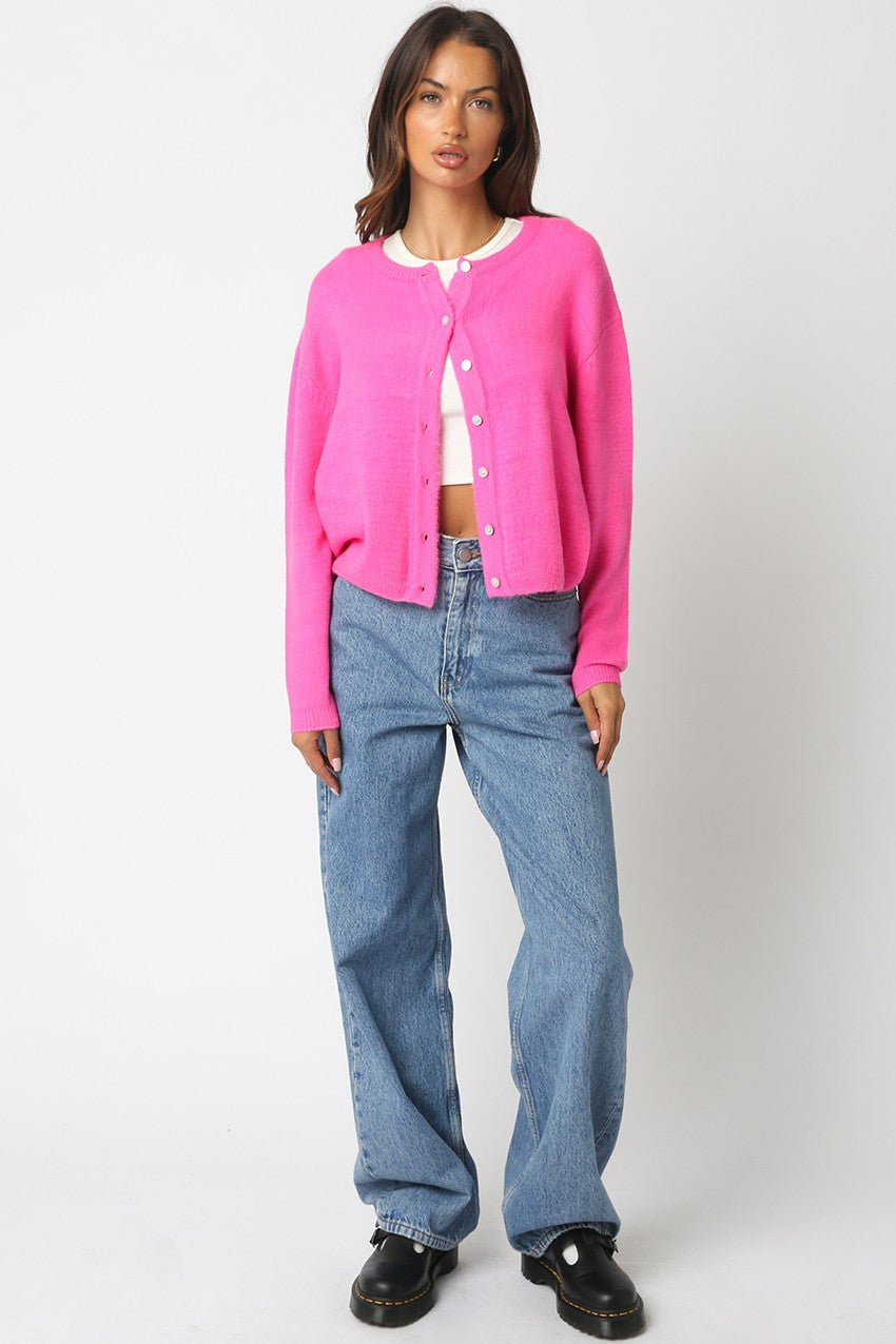 Bring a pop of playful charm to your wardrobe with the Blushing Hour Cardigan. This pink button-up cardigan blends cozy comfort with a flirty, feminine vibe, perfect for layering over your favorite outfits. Whether you're headed out for brunch or lounging at home, its soft fabric and sweet color add a cheerful touch to any look. Button it up or leave it open to match your mood — either way, you’ll be glowing with blushing hour style!
