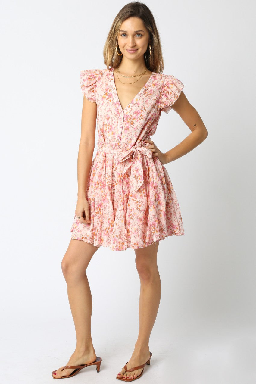 Get ready to bloom in the Blushing Petals Dress! This cream and pink floral dress features flirty ruffles and a playful tie belt, perfect for twirling the day away.