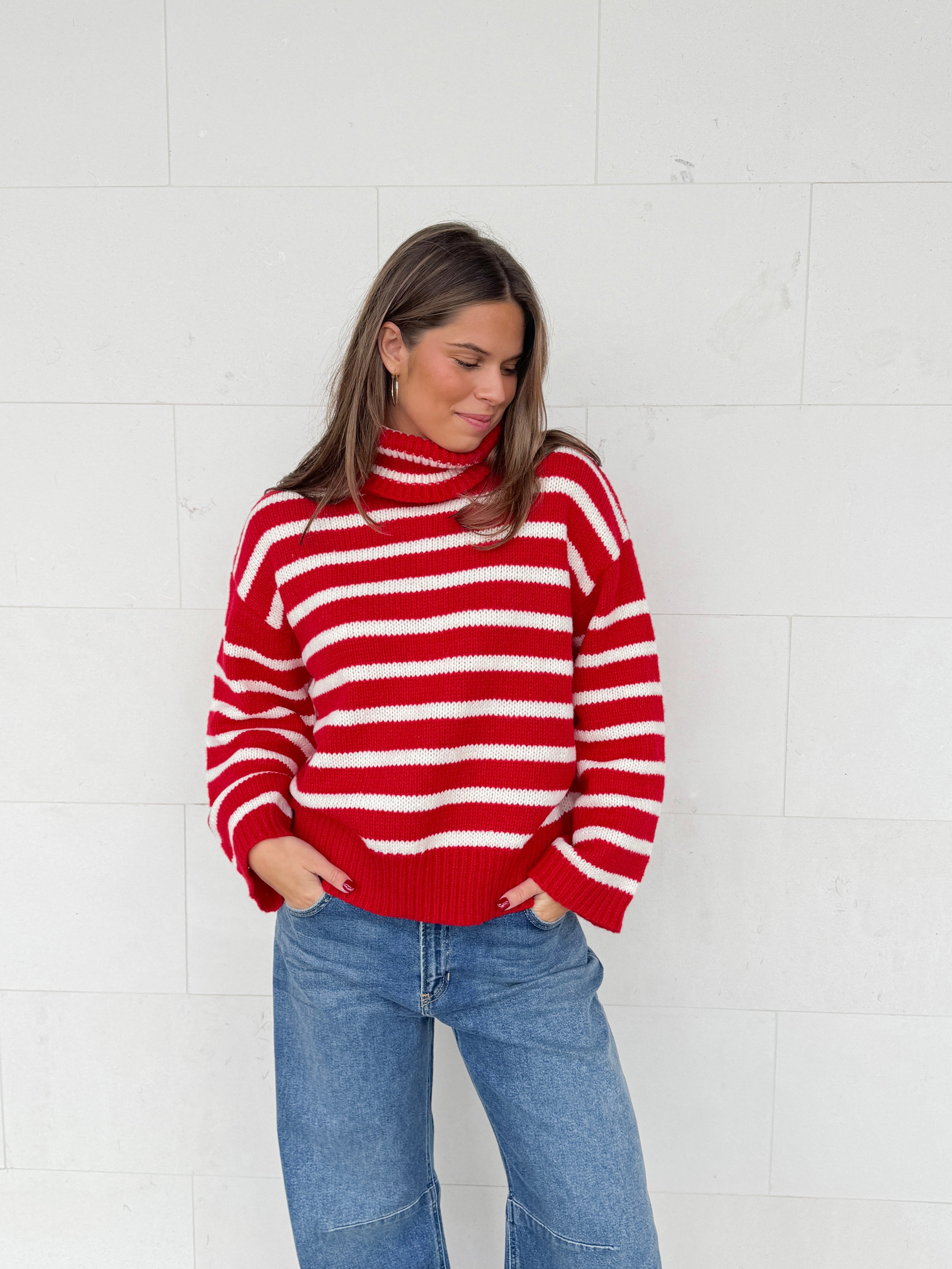Get cozy this holiday season with our "Candy Cane Lane" sweater! Featuring a playful stripe design and a trendy turtle neck, this sweater will keep you warm and stylish. Perfect for spreading joy and cheer (and maybe a little bit of sass) during your holiday festivities.