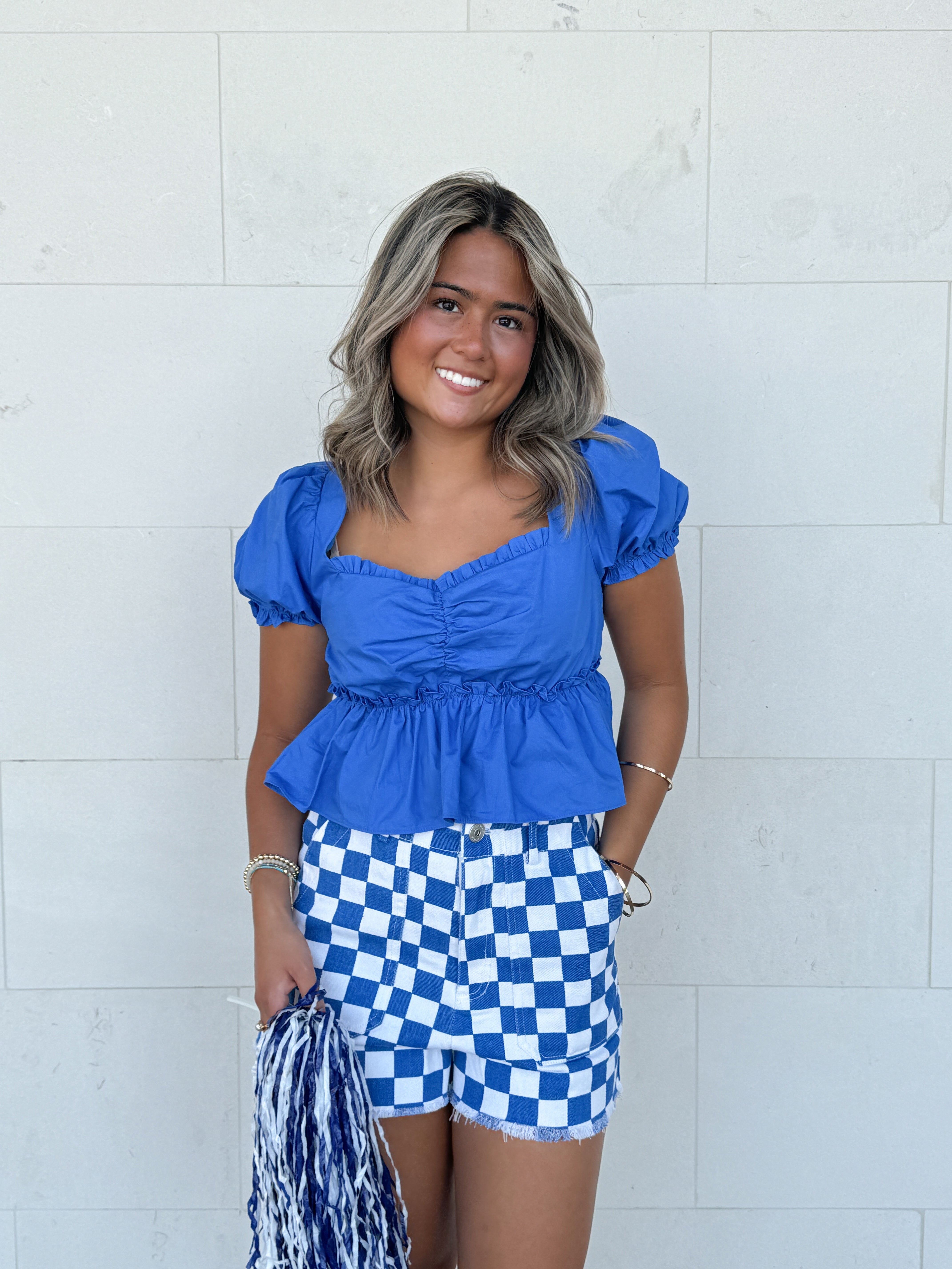 Get ready to check off your summer style with Colleen Checkered Royal Shorts. These playful and comfortable shorts are the perfect addition to any wardrobe. With a flattering checkered pattern and royal blue color, you'll stand out in the best way possible. Don't miss out on these unique and fun shorts!