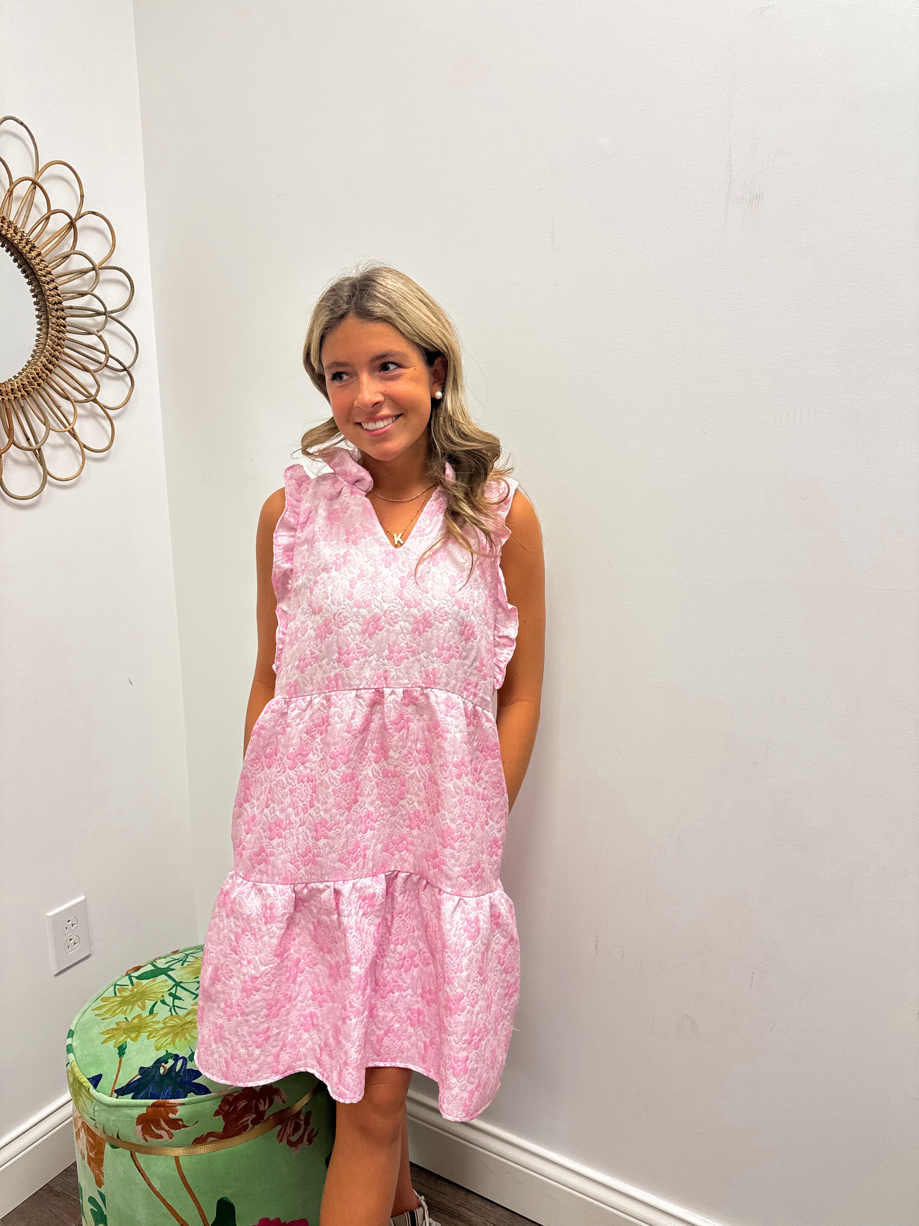 Get ready to dance in the meadow with this dress! The ruffle sleeves and textured flower print add a touch of whimsy to any occasion. Perfect for twirling in the sun, embrace your playful side with this dress.