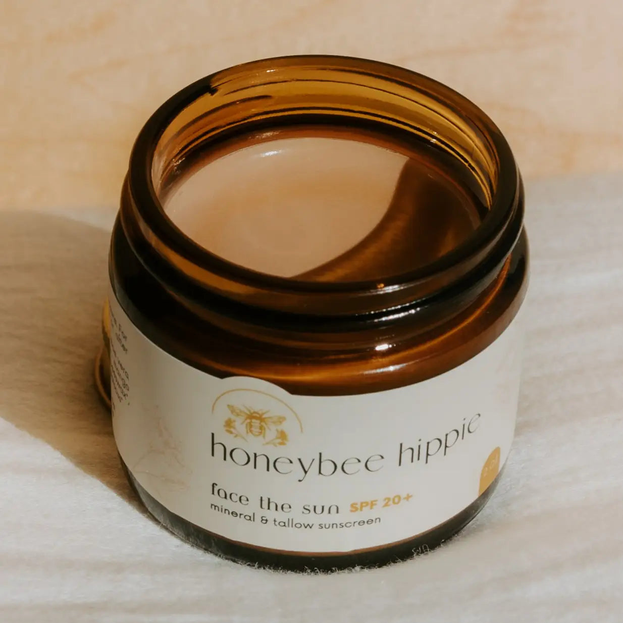 At honeybee hippie, we believe that the sun is necessary and beneficial, however too much UV exposure to delicate skin can cause burning and premature aging. For those sunny days, we offer face the sun, an all natural tallow based with non-nano zinc to offer some protection and made with the finest ingredients the earth has to offer.