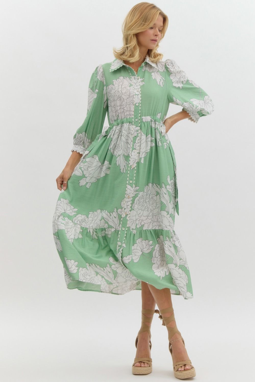 Get ready to make a statement in our Floral Cascade Midi Dress. With a floral print, this dress is perfect for any occasion. The flowy fit and midi length add a touch of whimsy to your wardrobe.
