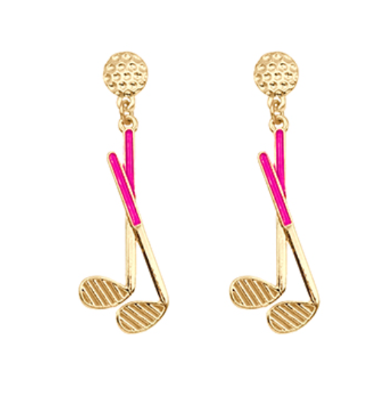 Dress up your look—and your pars—with these bold and stylish Golf Club Drop Earrings! They feature a unique club shaped design, and come in a rosy pink color that'll have you standing out on the green. Perfect for the golfing enthusiast, these earrings will turn heads and get you a hole-in-one in the style department!
