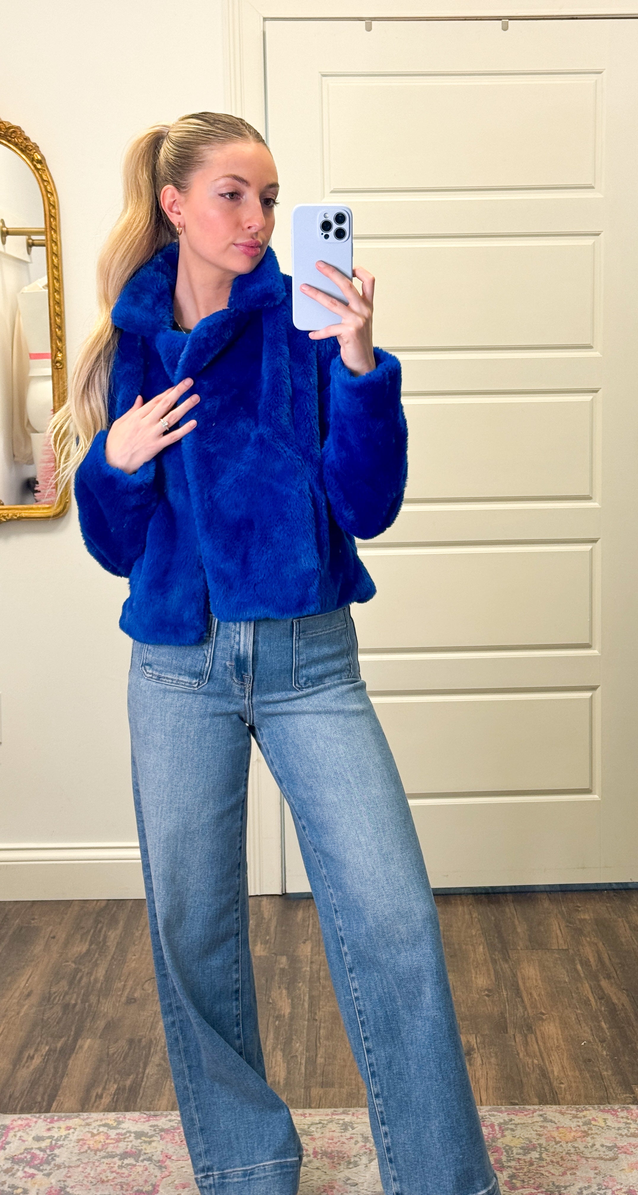 The I Rock The Blue Short Faux Fur Coat is a stylish and luxurious addition to your wardrobe. Made with top-quality faux fur, this coat offers exceptional warmth and comfort. Its blue color adds a touch of elegance to any outfit. Stay on trend with this must-have piece.