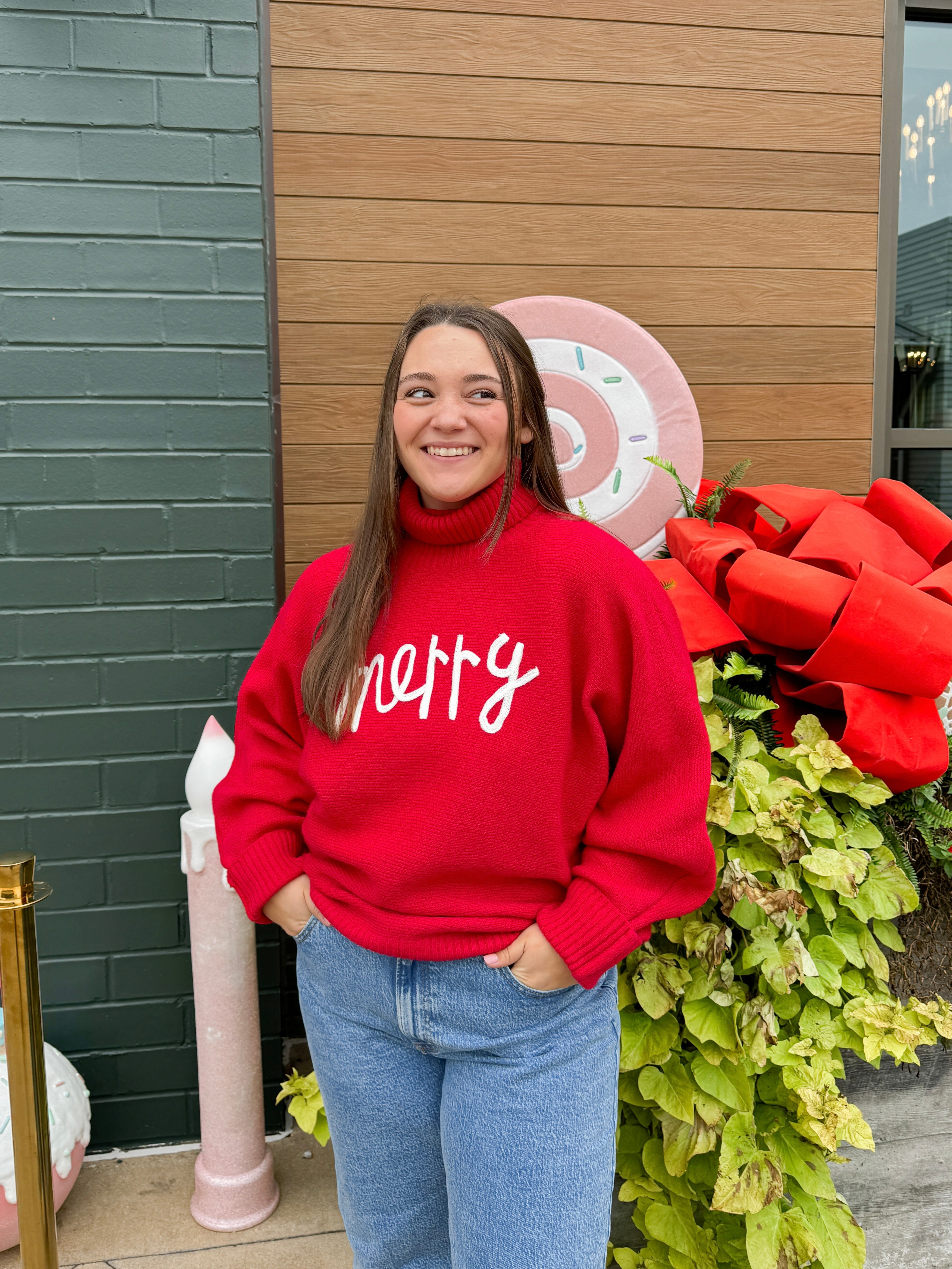 Stay cozy and stylish this holiday season with the Merry All Around Sweater. This turtleneck sweater will keep you warm and fashionable. So go ahead, spread joy and laughter while being comfortably chic in this festive sweater.