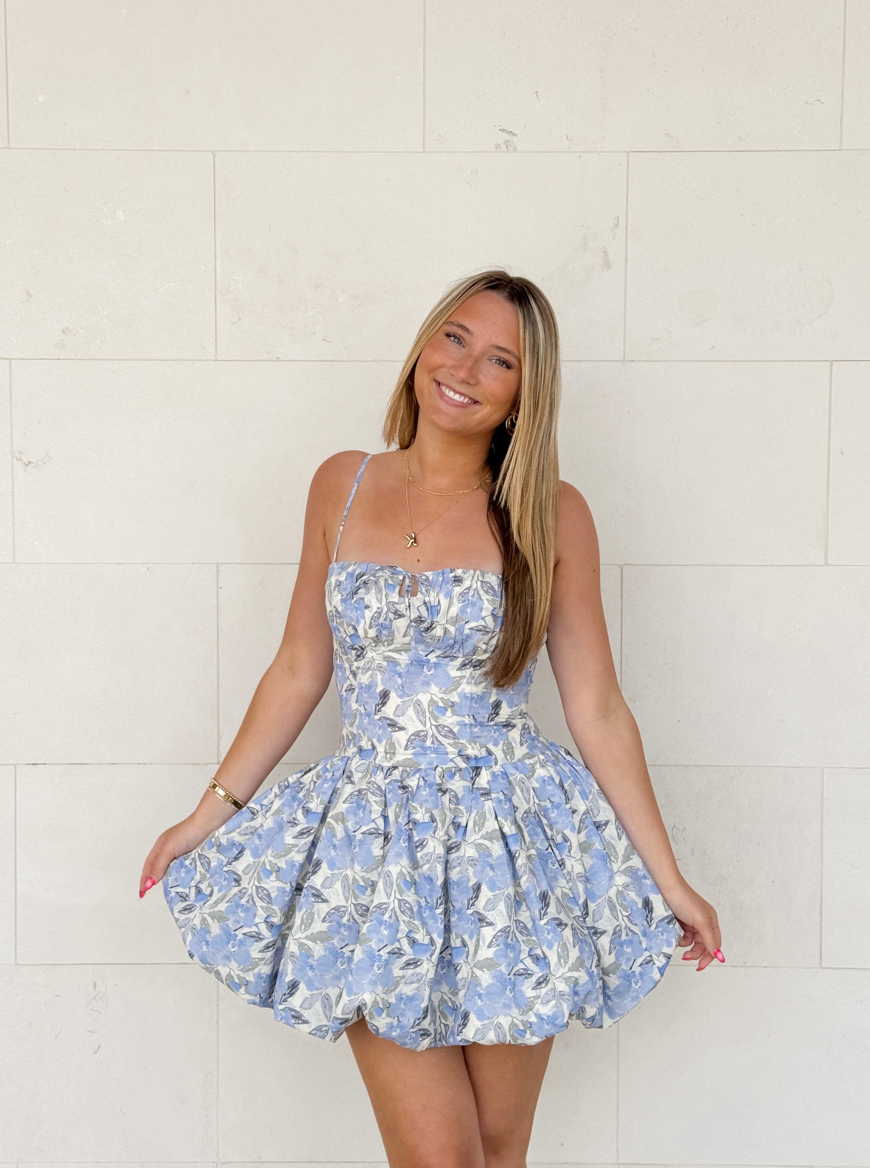 Get ready to bloom in style with our Petals In Provence Dress! This playful blue dress features a vibrant floral pattern and a tank top design for a fun and flirty look. The short length is perfect for showing off your legs, and the little bow at the top adds a charming touch. Perfect for any occasion, this dress is sure to make you stand out!