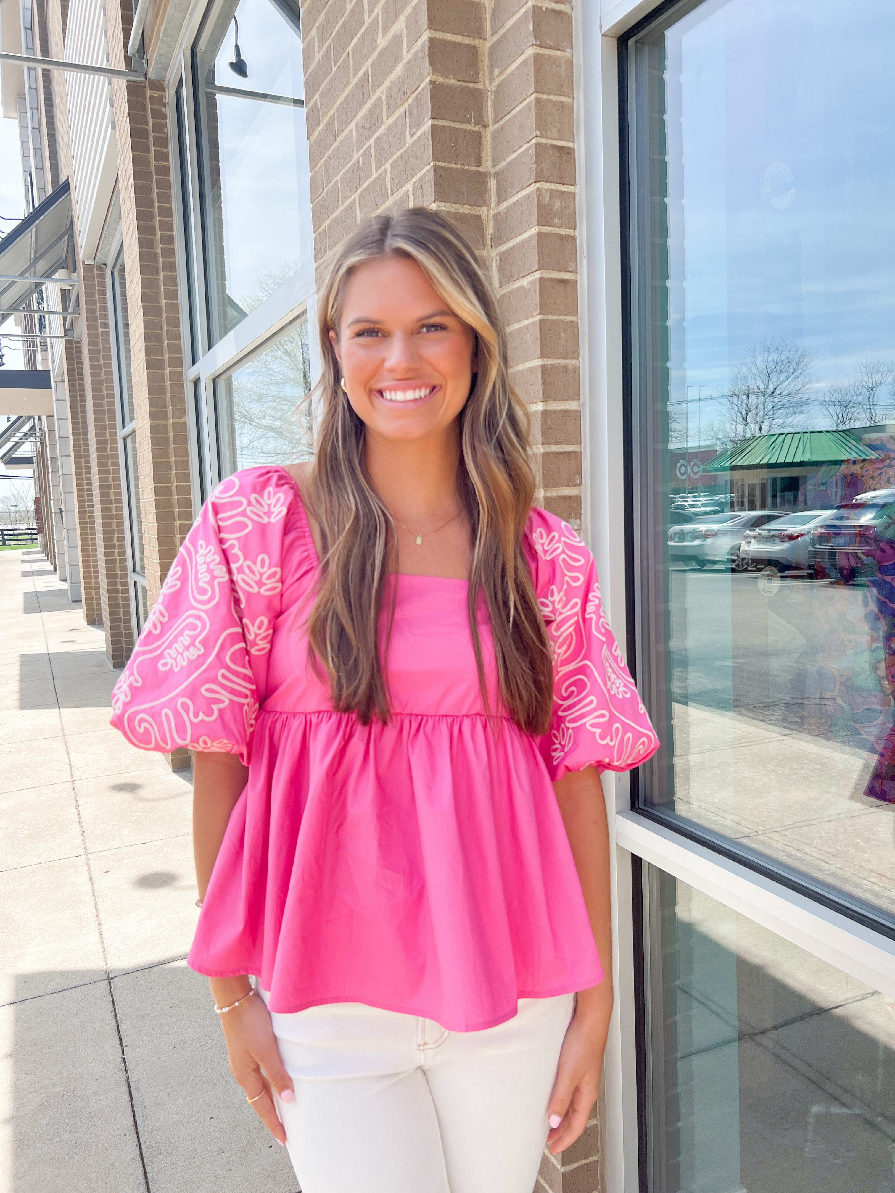 Crafted from soft and durable fabric, it features an intricate embroidered design with puff sleeves for a look that is timeless and elegant. Perfect for any occasion, you'll love wearing this top wherever you go.