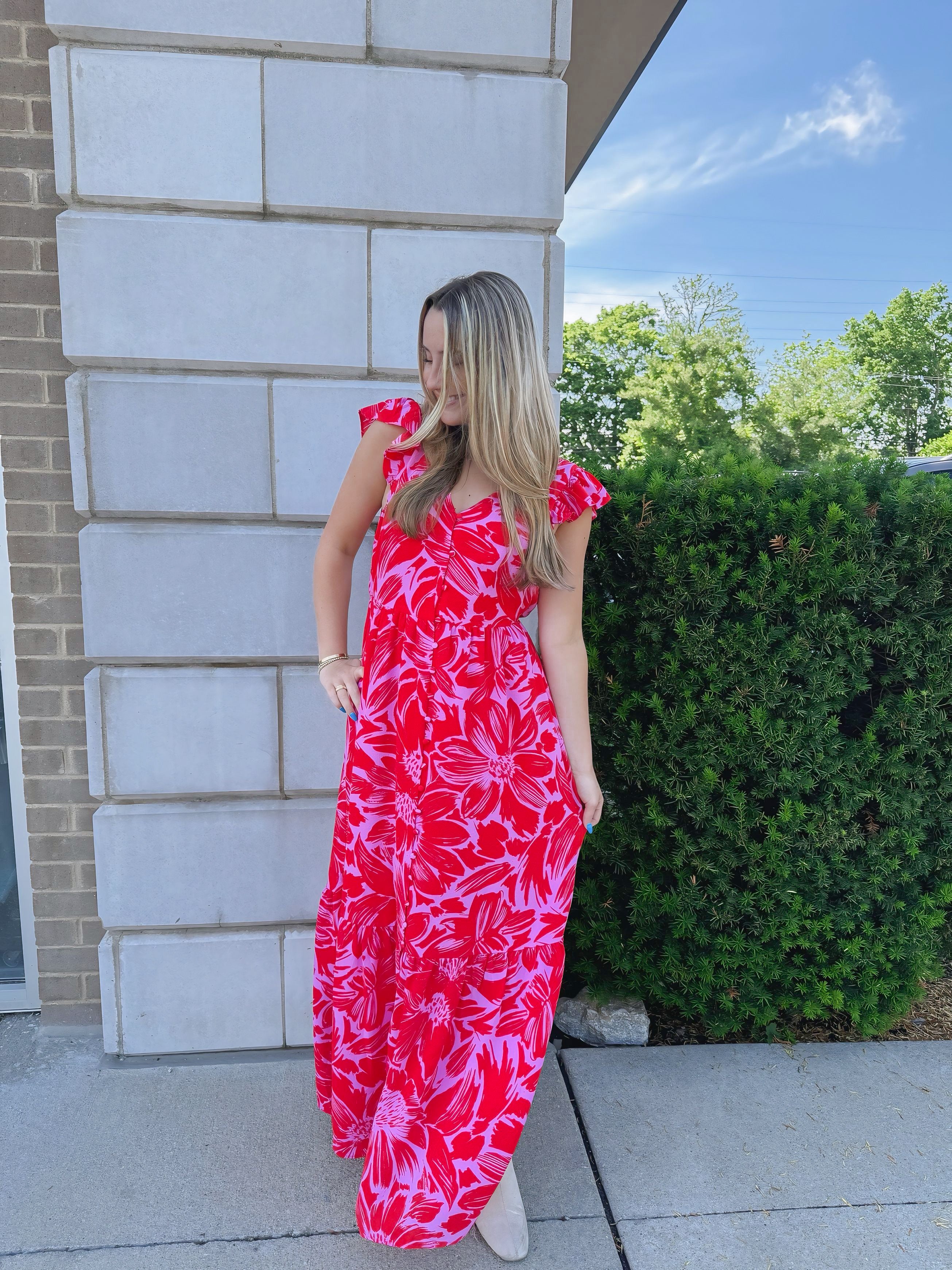Float through your day in the Rania Floral Maxi Dress, where whimsy meets comfort! This head-turning number showcases a dance of blooms that'll have you spinning just to see it twirl. With its flowy silhouette and eye-catching pattern, you'll be serving major garden-party vibes wherever you go.