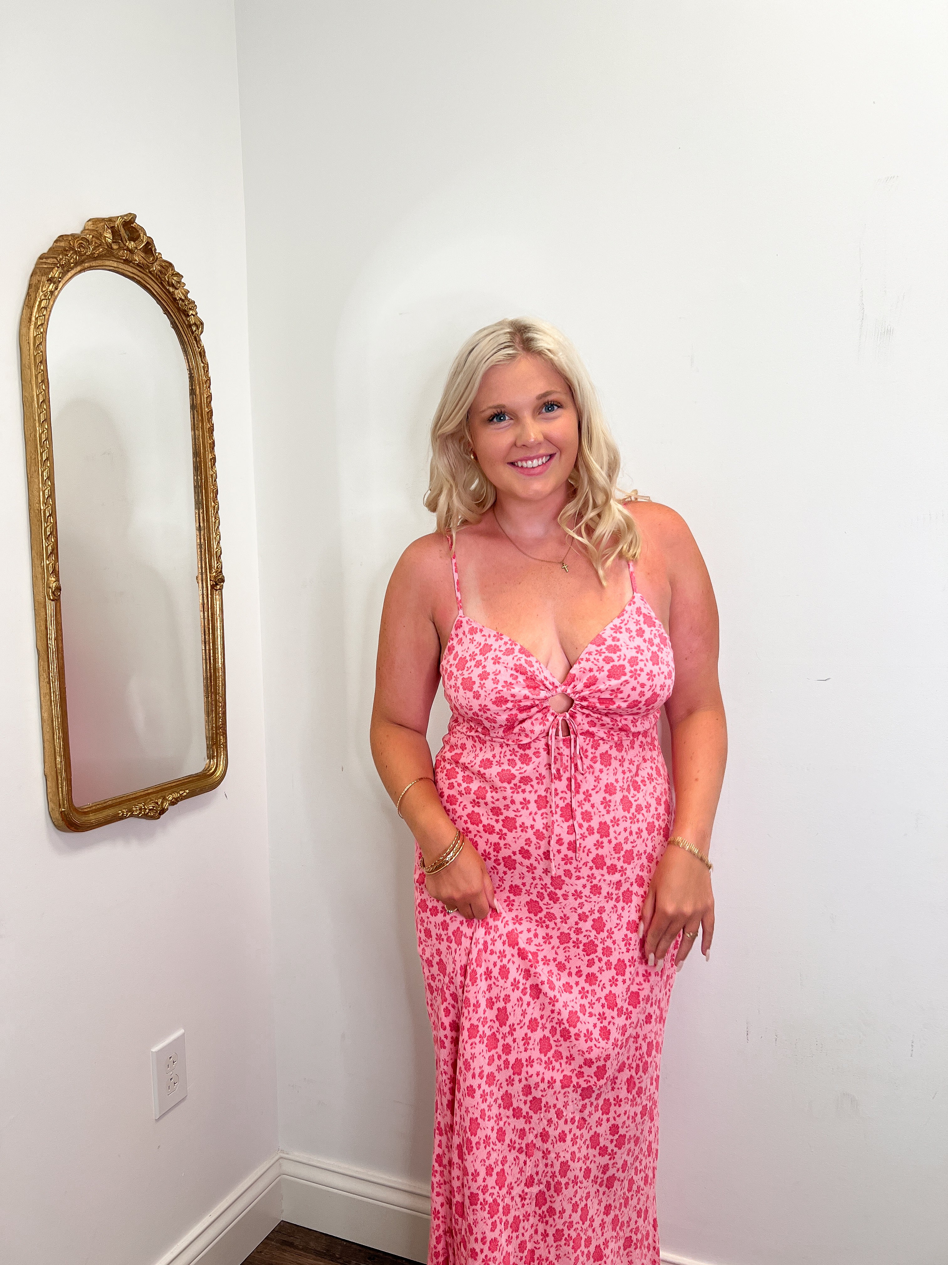 Get ready to turn heads in our Secret Garden Maxi Dress! This playful sleeveless dress features a unique keyhole design that adds a touch of mystery to your look. Perfect for any occasion, this dress will make you feel confident and stylish while keeping things fun and lighthearted. (Bloom into fashion with this quirky maxi dress! No need to keep this secret, show off your playful side with the keyhole design. Perfect for looking fabulous and having a good time!)