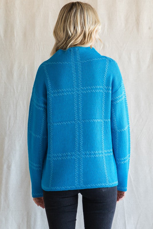 Beat the chill in style with this plaid knit pullover sweater! Featuring a mock neck, drop shoulder, and long sleeves, this playful piece is perfect for fall evenings spent with friends. With its medium weight and unlined, non-sheer fabric, you'll stay comfortable and chic all day long. Get showin' ya top!