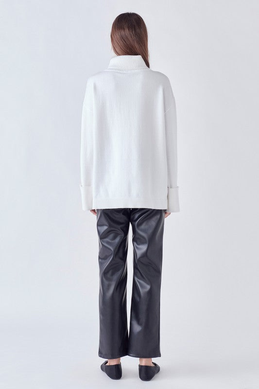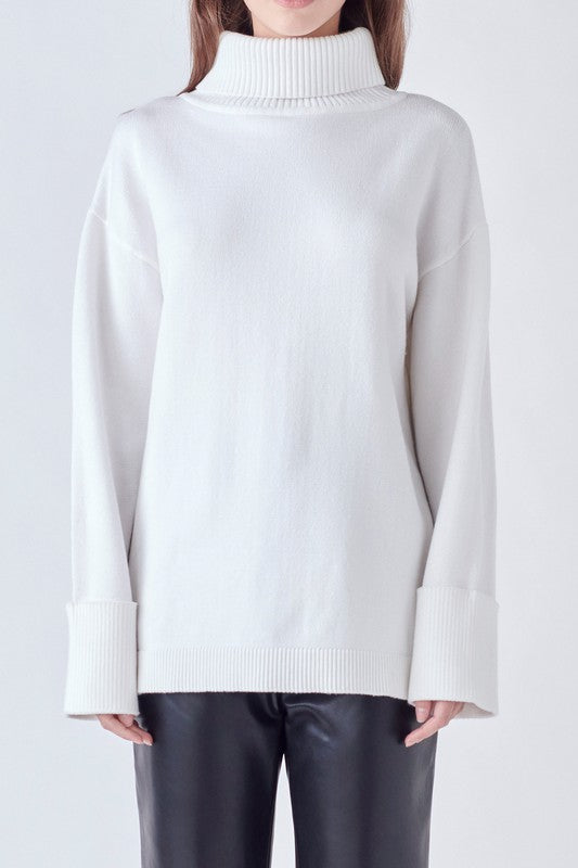 Show off your snow-white style in this cozy sweater! Featuring a turtle neck and cuffed sleeves, this whimsical piece will be a guaranteed crowd-pleaser. You'll be the fairest of them all! π