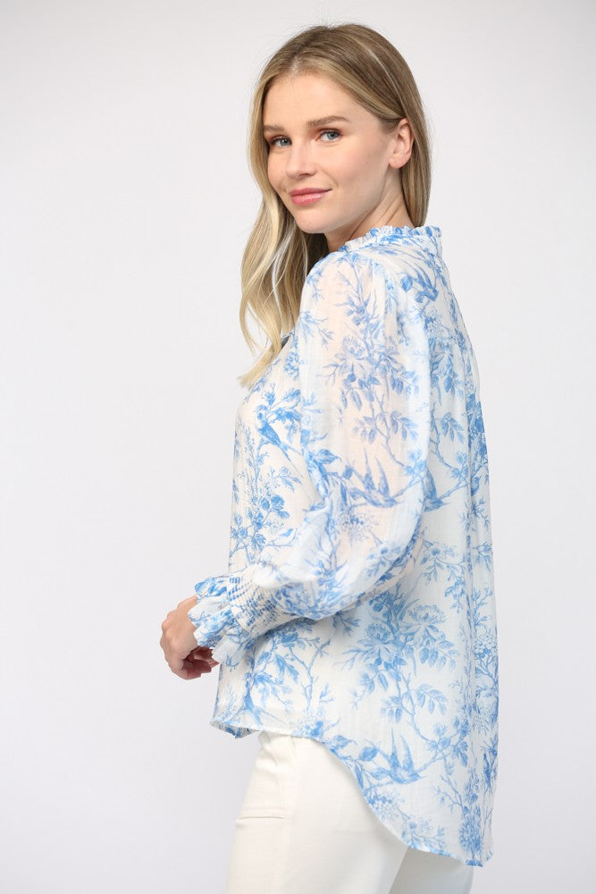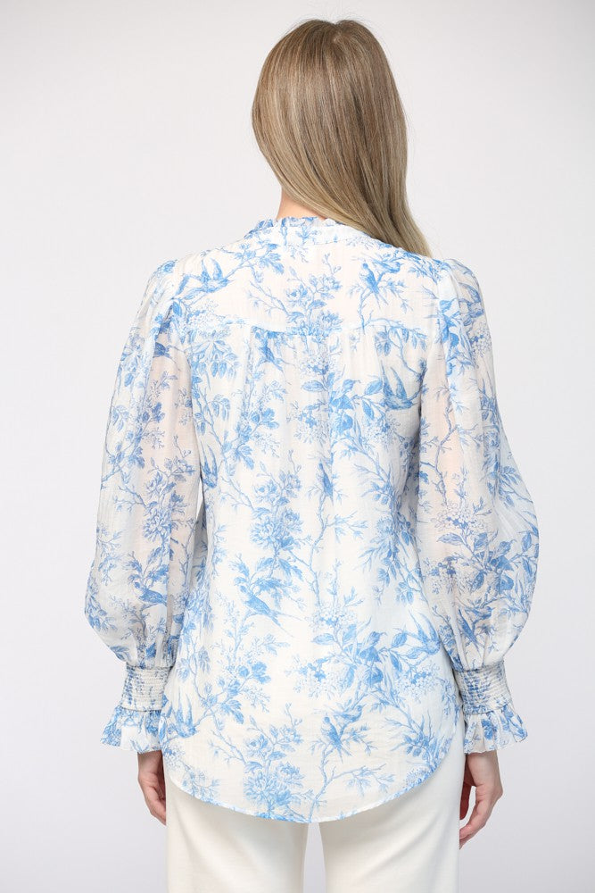 Get ready to turn heads in our Printed Tencel Blend Ruffle Neck Blouse. Made with a luxurious blend of Tencel fabric, this blouse features a playful ruffle neckline for a touch of whimsy. Perfect for any occasion, this blouse adds a chic and unique touch to any outfit.