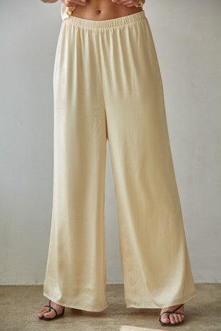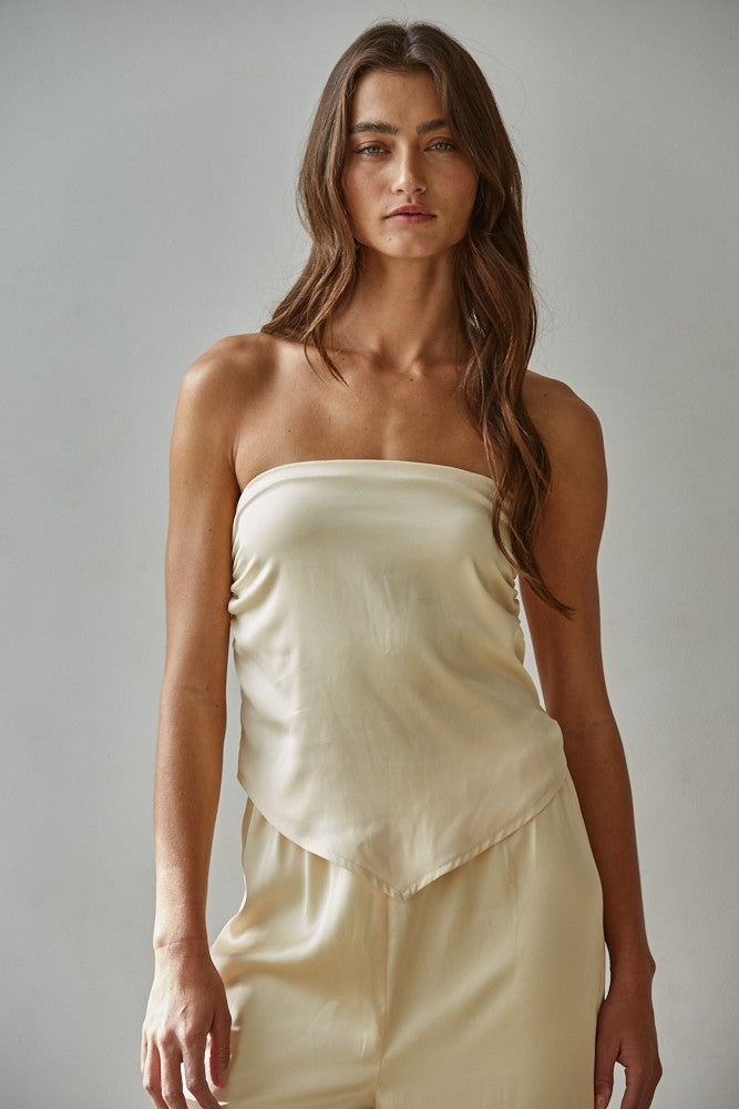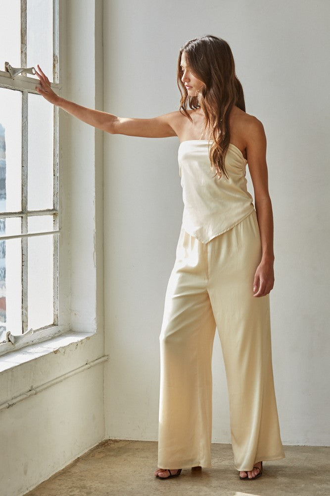 Embrace effortless elegance with this luxurious two-piece set. The butter yellow bandana top features a flattering silhouette and playful neckline detail, perfectly paired with matching silk pants in the same warm, sunny hue. Crafted from premium silk, both pieces drape beautifully and offer a soft, comfortable feel against the skin. Ideal for warm-weather occasions, casual outings, or creating a cohesive, sophisticated look. The coordinated set makes styling simple while delivering timeless appeal and understated luxury.