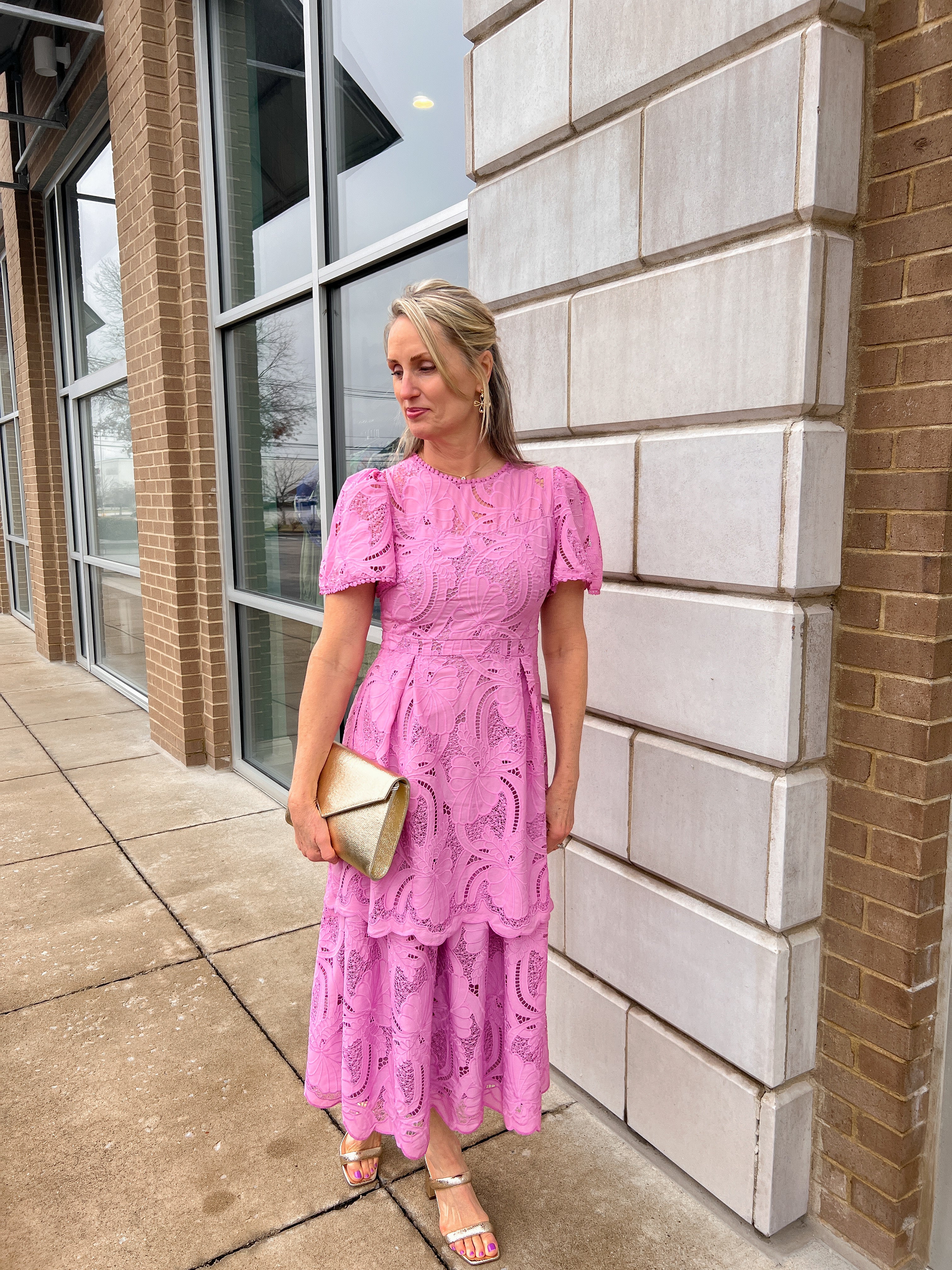 Indulge in the Sweet Pea Lace Tiered Dress midi, perfect for any occasion. With intricate lace detailing and a stylish tiered design, this dress will have you feeling beautiful and confident. Don't miss out on this wardrobe must-have!