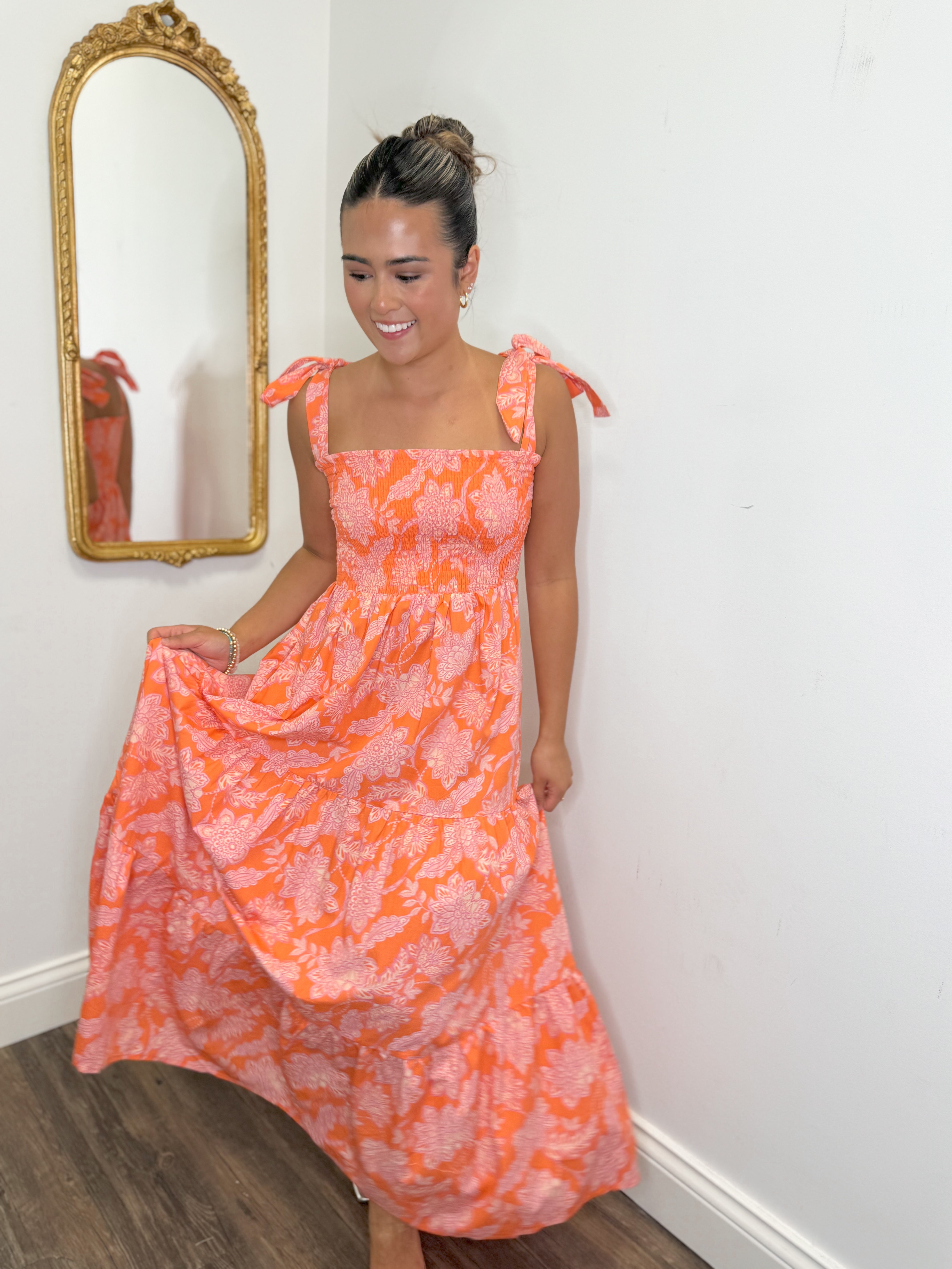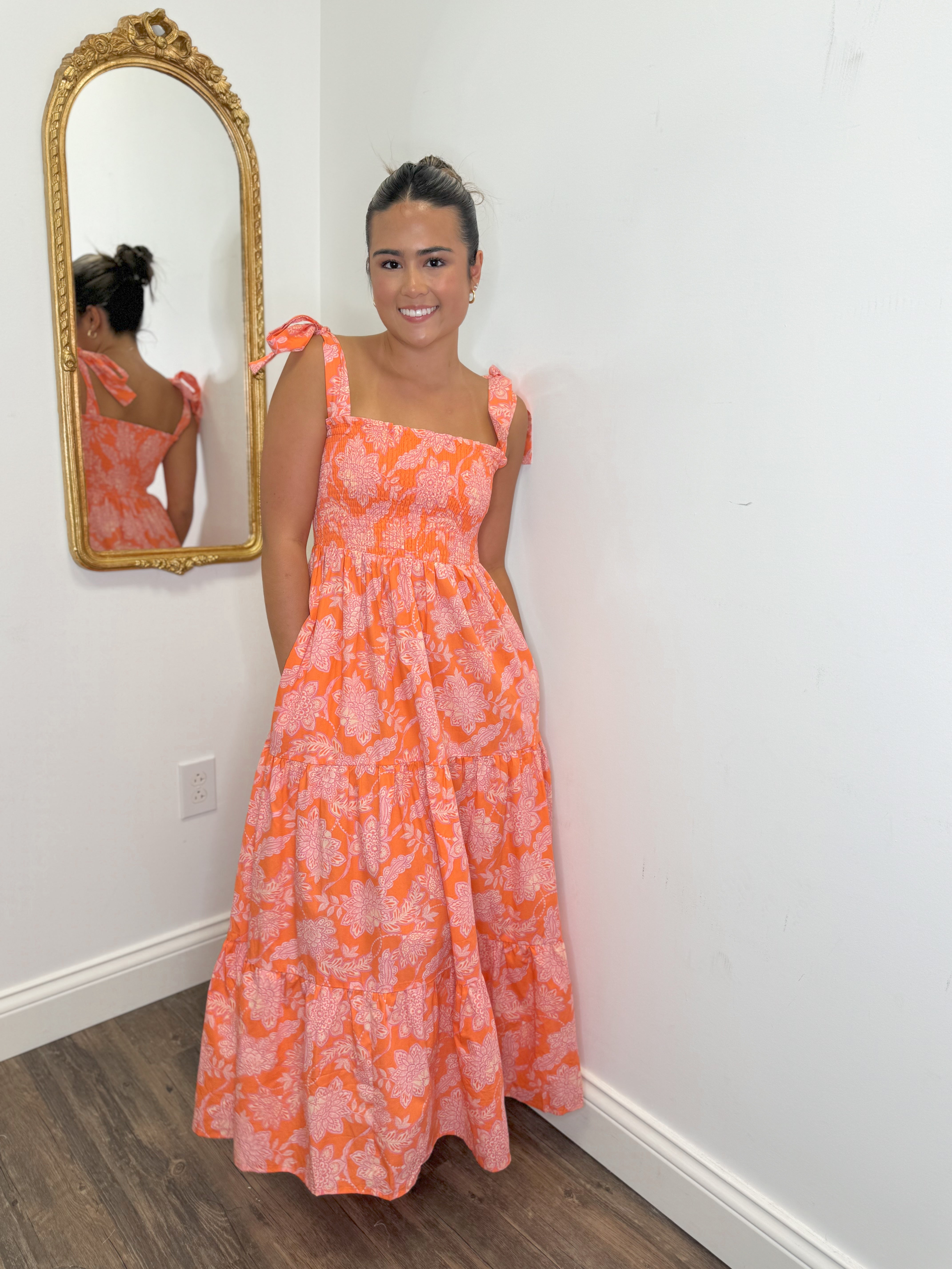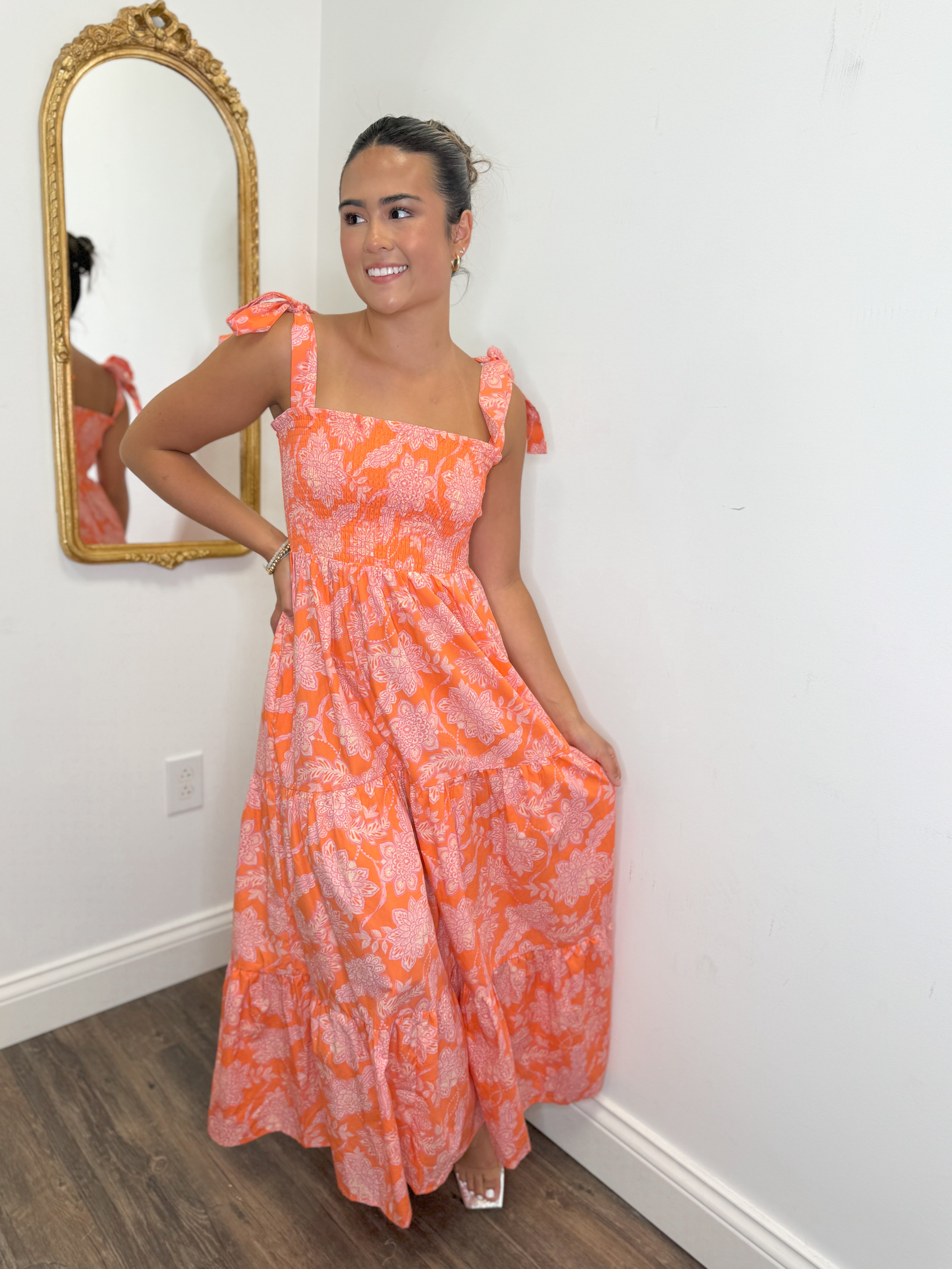 Brighten up your summer wardrobe with this playful Sweet Summer Orange Midi Dress. The smocked top adds a touch of sweetness while keeping you comfortable all day long. Perfect for any summertime occasion, this dress will make you stand out in the best way possible!