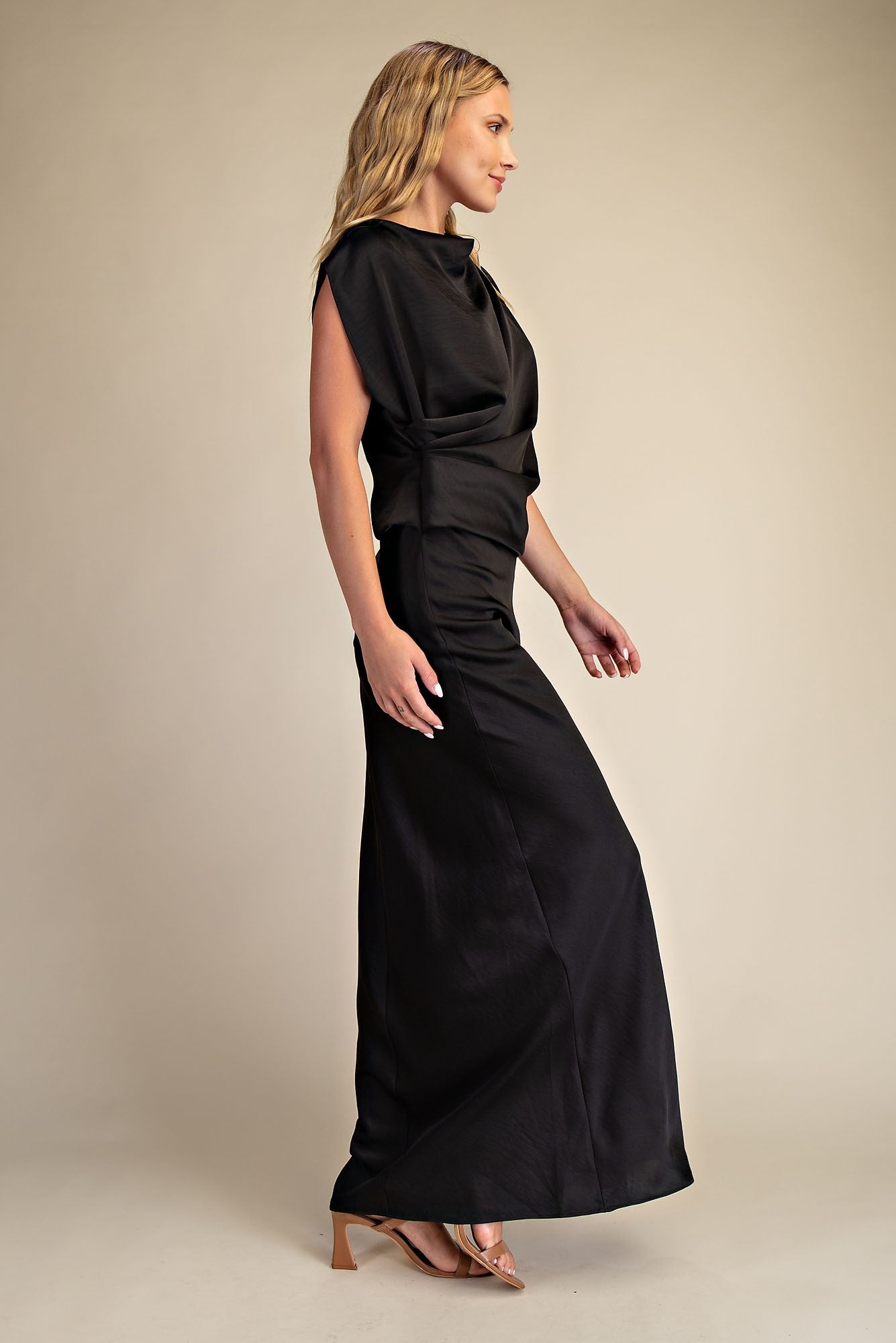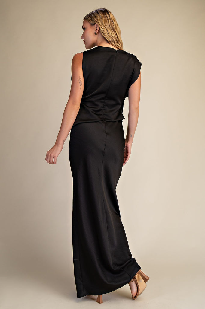 Slip into sophistication with The Black Tie Night Dress—a stunning black satin maxi that's ready for your most glamorous moments. The elegant colon neckline adds a touch of refined drama, while the luxurious satin fabric drapes beautifully for an effortlessly chic silhouette. Whether you're heading to a gala, wedding, or upscale evening event, this timeless piece promises to turn heads and make you feel absolutely fabulous. Dress it up with heels and statement jewelry for an unforgettable night out.
