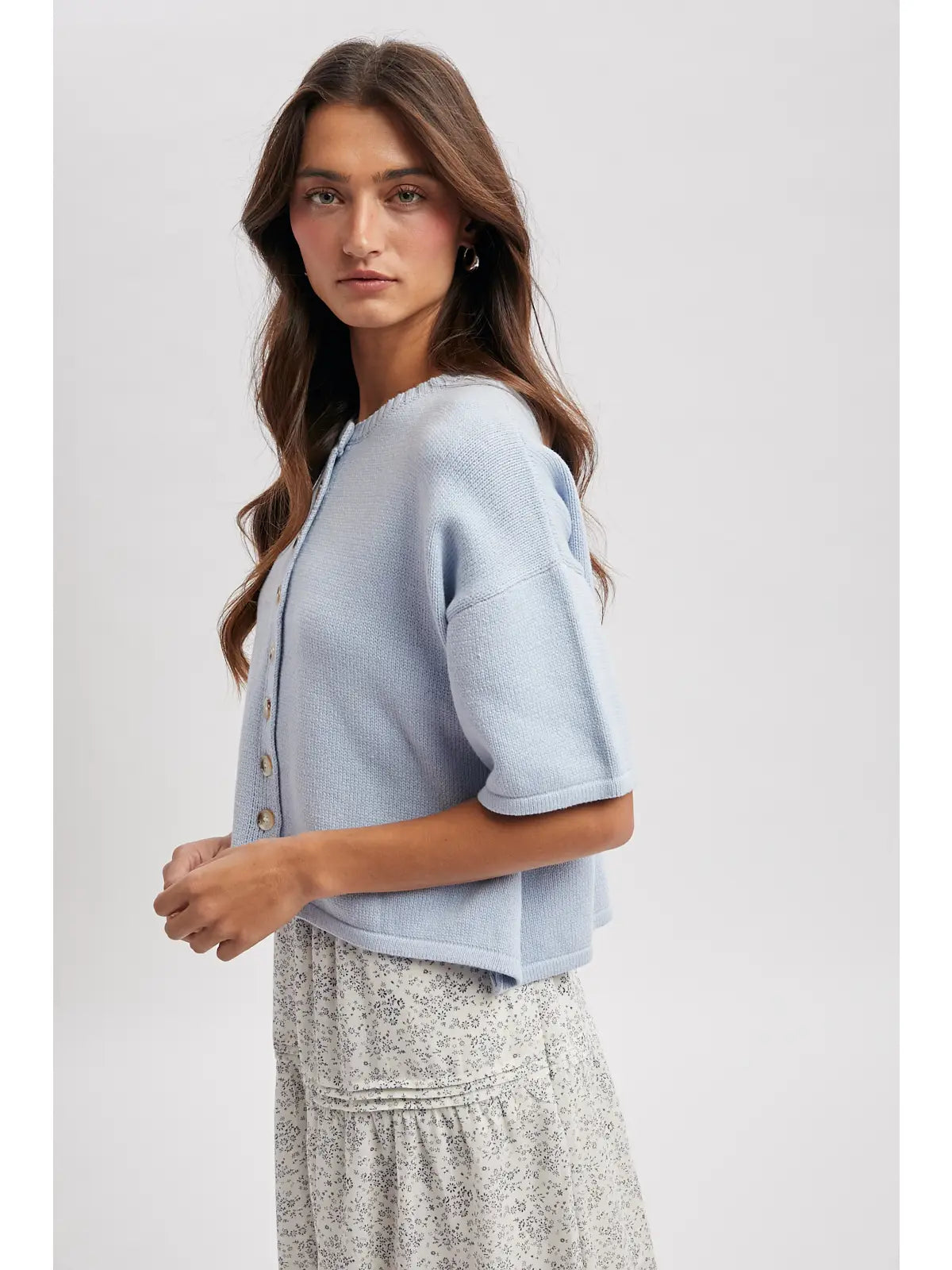 Slip into effortless style with this charming blue cardigan! Perfect for layering over your favorite tee or dress, this short-sleeve wonder adds just the right pop of color to any outfit. With convenient button-front closure and a relaxed fit, it's your go-to piece for casual days and breezy evenings. Whether you're heading to brunch or running errands, this versatile sweater keeps you looking put-together and feeling fabulous.