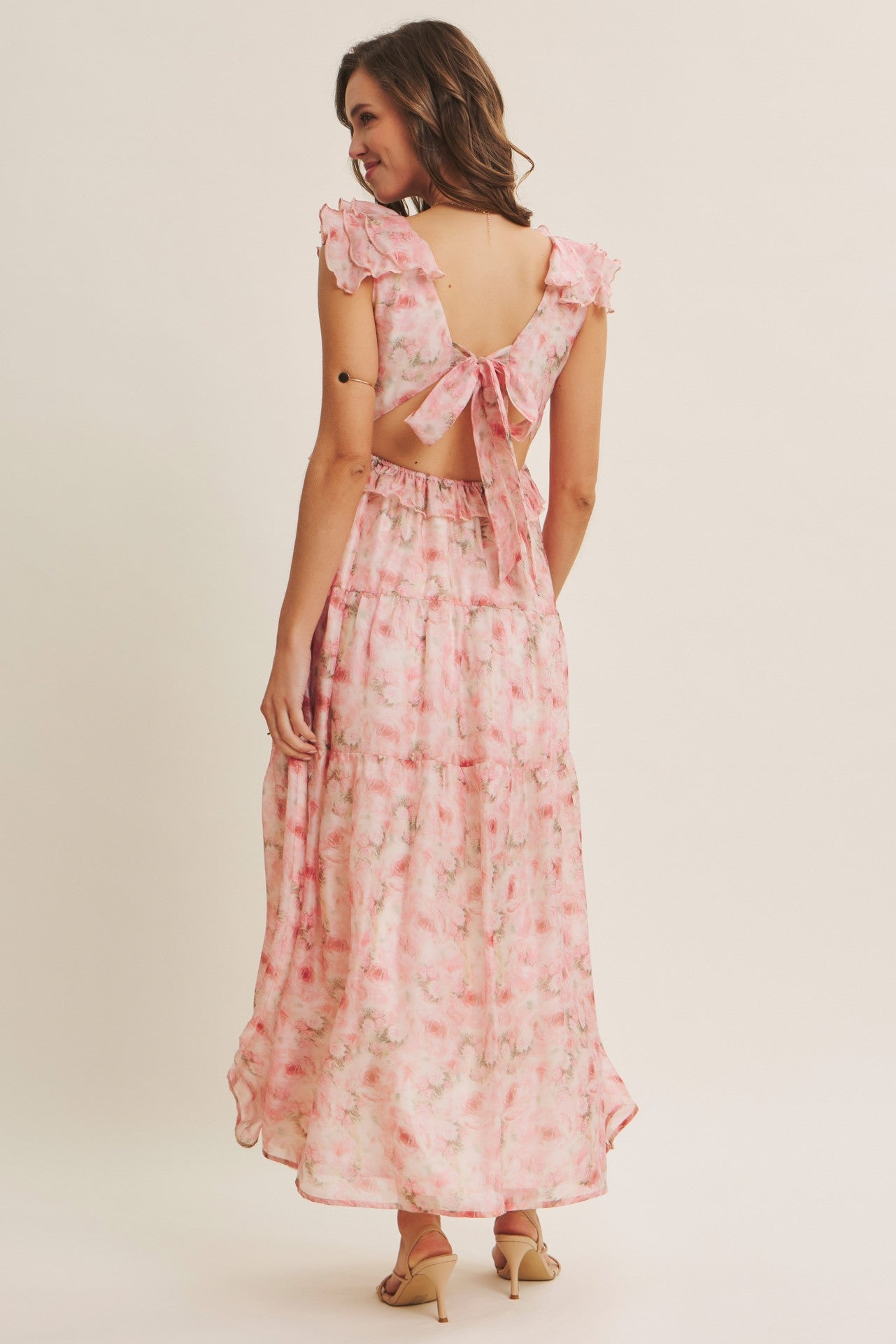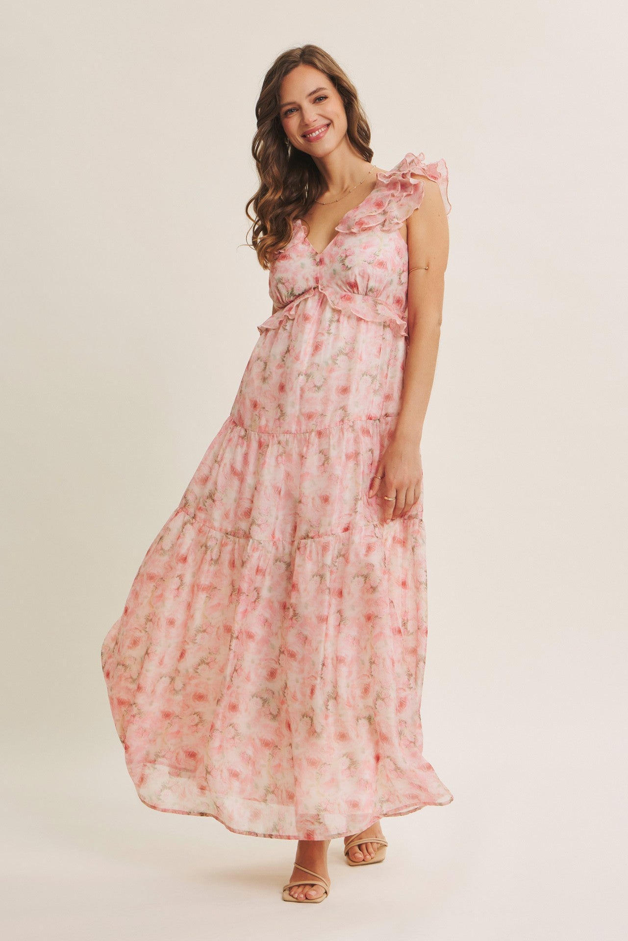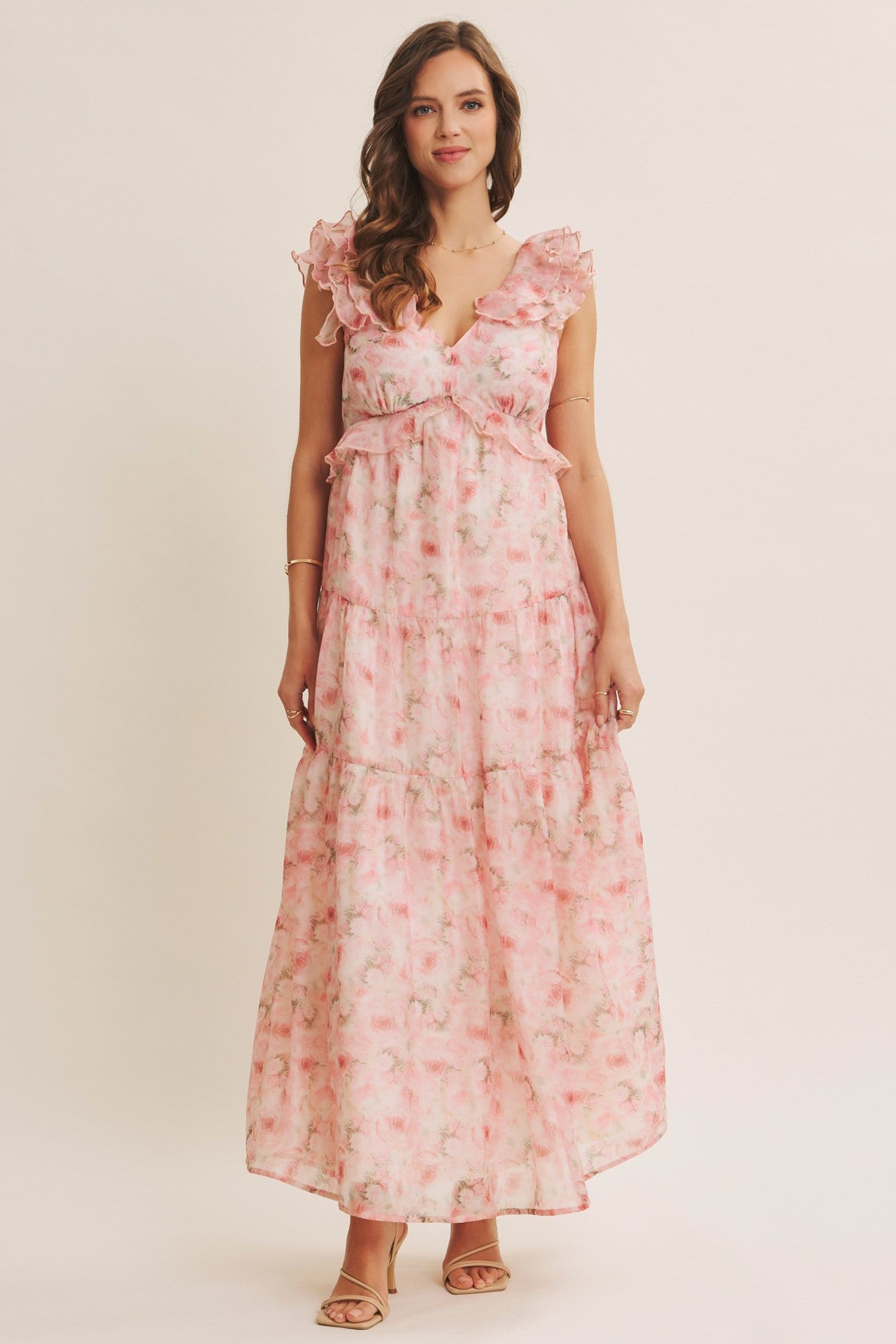 Make a statement in The Cascading Petals Dress, where romance meets movement. Delicate ruffles cascade down the silhouette like flower petals caught in a gentle breeze, creating an enchanting layered effect that dances with every step. This floral maxi dress combines whimsical charm with effortless elegance, perfect for garden parties, weddings, or any occasion calling for a touch of magic. The flowing design flatters all figures while the vibrant botanical print celebrates nature's beauty. Twirl, sway, and shine in this unforgettable piece that transforms you into the belle of the ball.