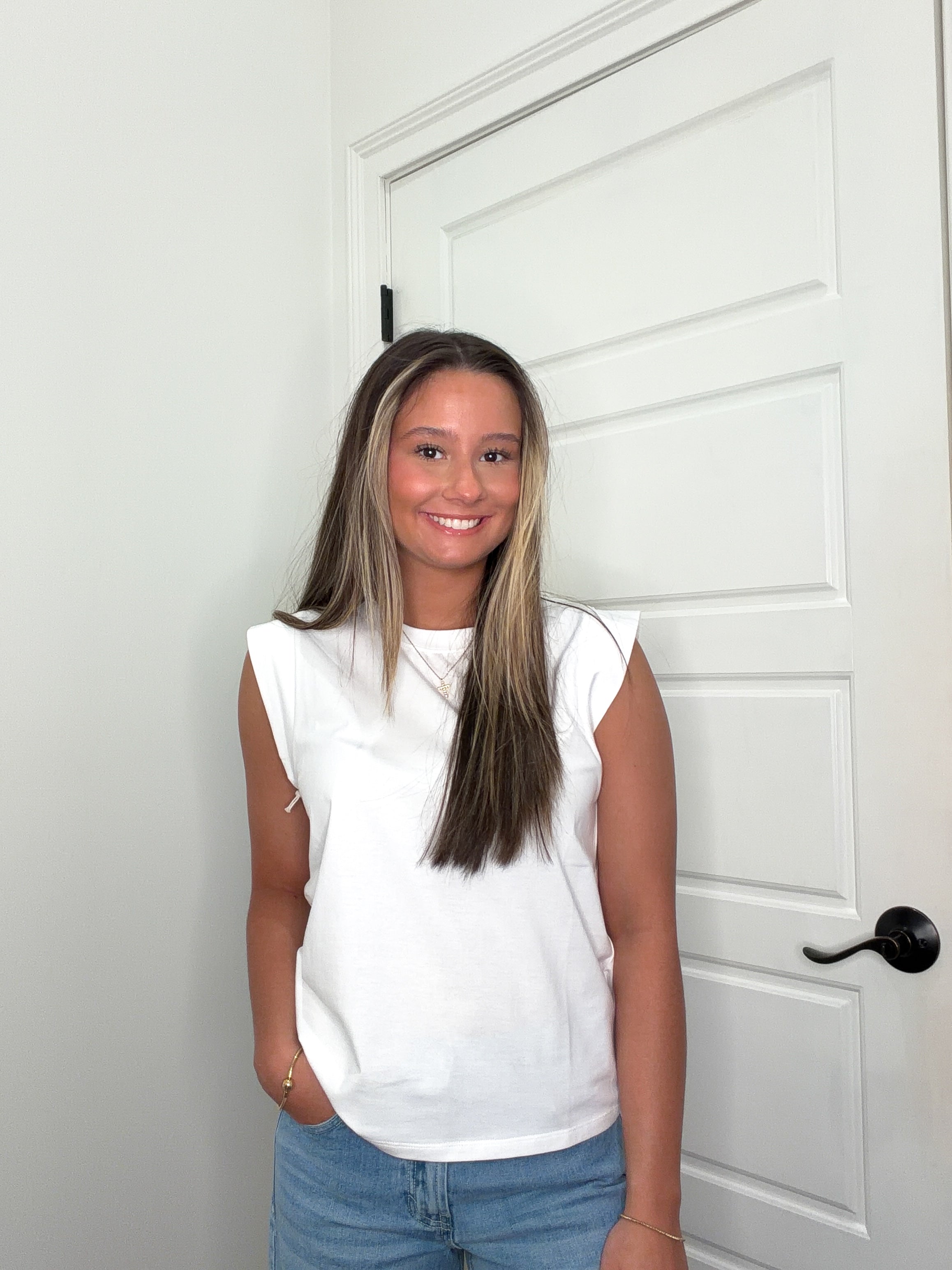 The Essential White Tank is your closet's new best friend. This crisp, versatile tank features charming cuff sleeves that add just the right touch of personality to an otherwise timeless piece. Perfect for layering under blazers, pairing with your favorite jeans, or wearing solo on warm days. Clean lines, comfortable fit, and endless styling possibilities—because great basics should never be boring.