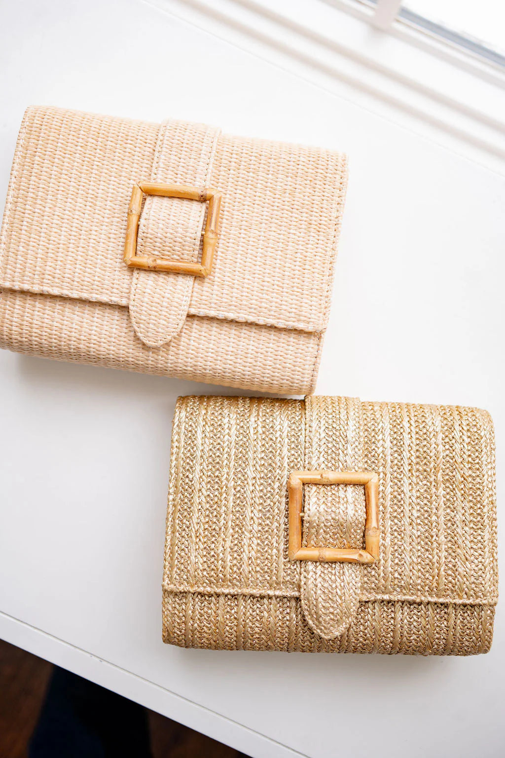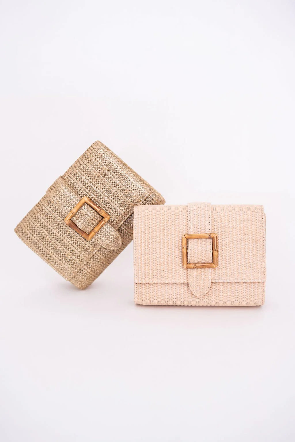 The Janie Straw Clutch is a versatile accessory crafted from natural straw, designed to complement any warm-weather wardrobe. Choose between a sleek gold buckle for a touch of elegance or a natural bamboo buckle for an earthy, organic aesthetic. Perfect for beach days, casual outings, or evening events, this clutch combines lightweight comfort with timeless style. The durable straw construction ensures longevity, while the secure buckle closure keeps your essentials safe and organized.