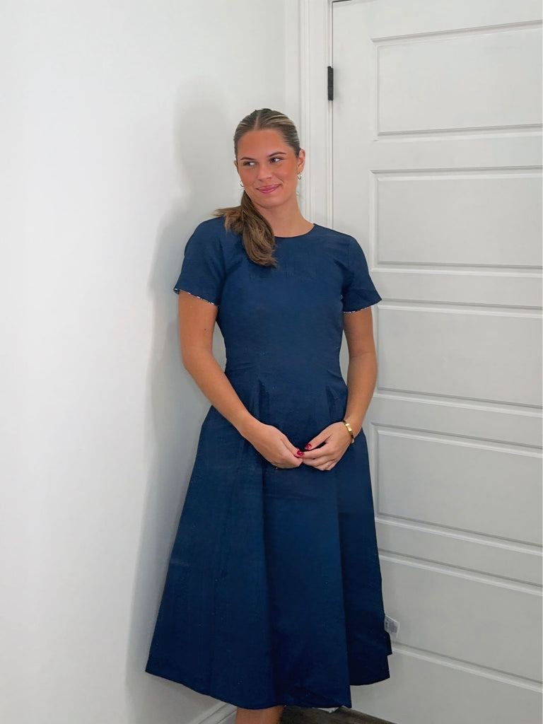 Slip into the playful charm of The Midnight Meadow Dress, a maxi reversible midi dress in rich navy. With delightful light blue and green detailing, this dress lets you switch up your look effortlessly while embracing a whimsical, nature-inspired palette. Perfect for days when you want both comfort and a splash of spirited style.