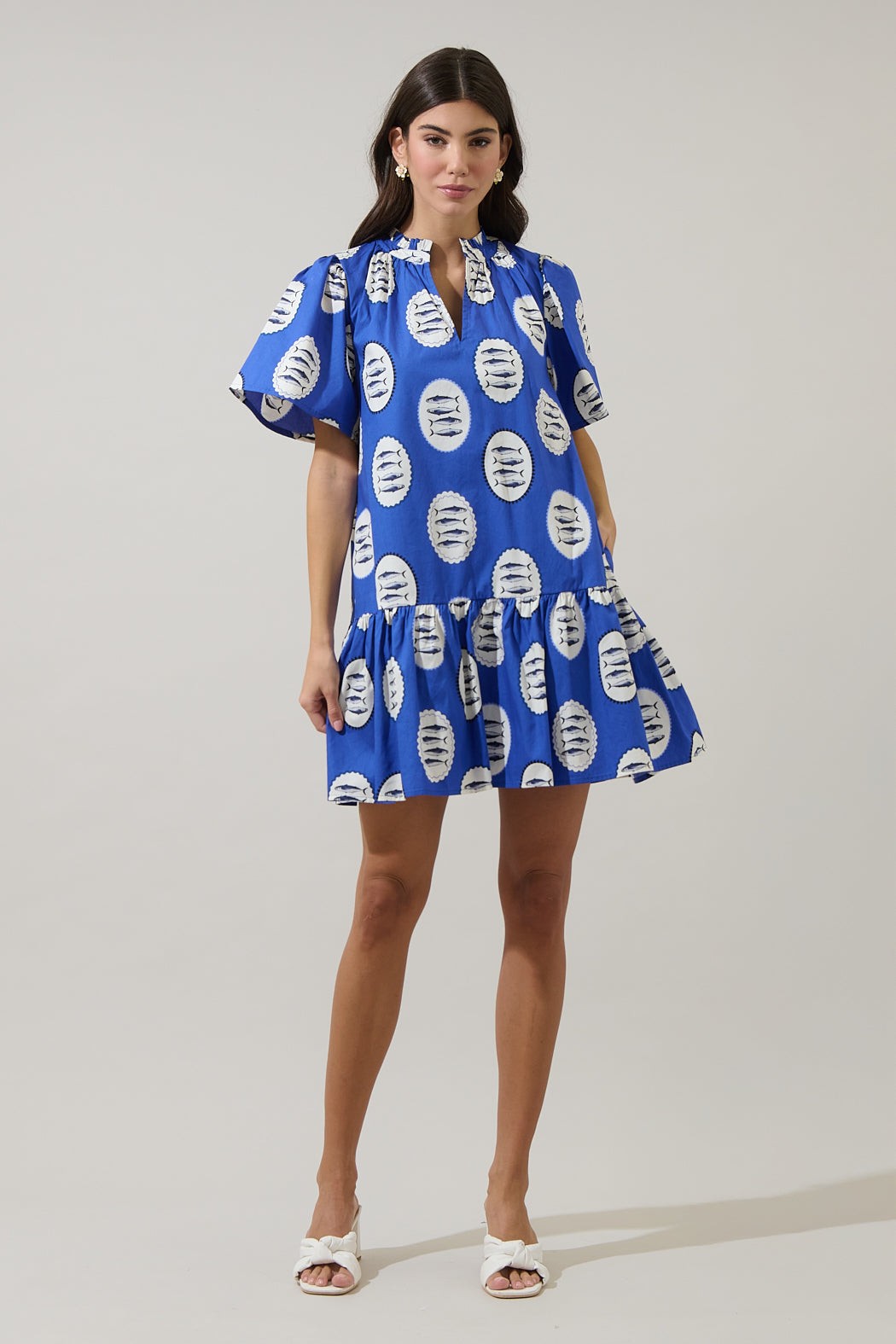 Dive into whimsy with The Sardine Sea Dress, a charming blue babydoll style adorned with delightful sardine details. Perfect for those who love quirky, ocean-inspired fashion with a playful twist, this dress brings a splash of personality to your wardrobe. The relaxed babydoll silhouette offers comfort and flattering movement, while the sardine motif adds an unexpected pop of fun. Whether you're heading to a casual outing or want to make a lighthearted statement, this dress is sure to spark smiles and conversations. Embrace your inner sea creature enthusiast!