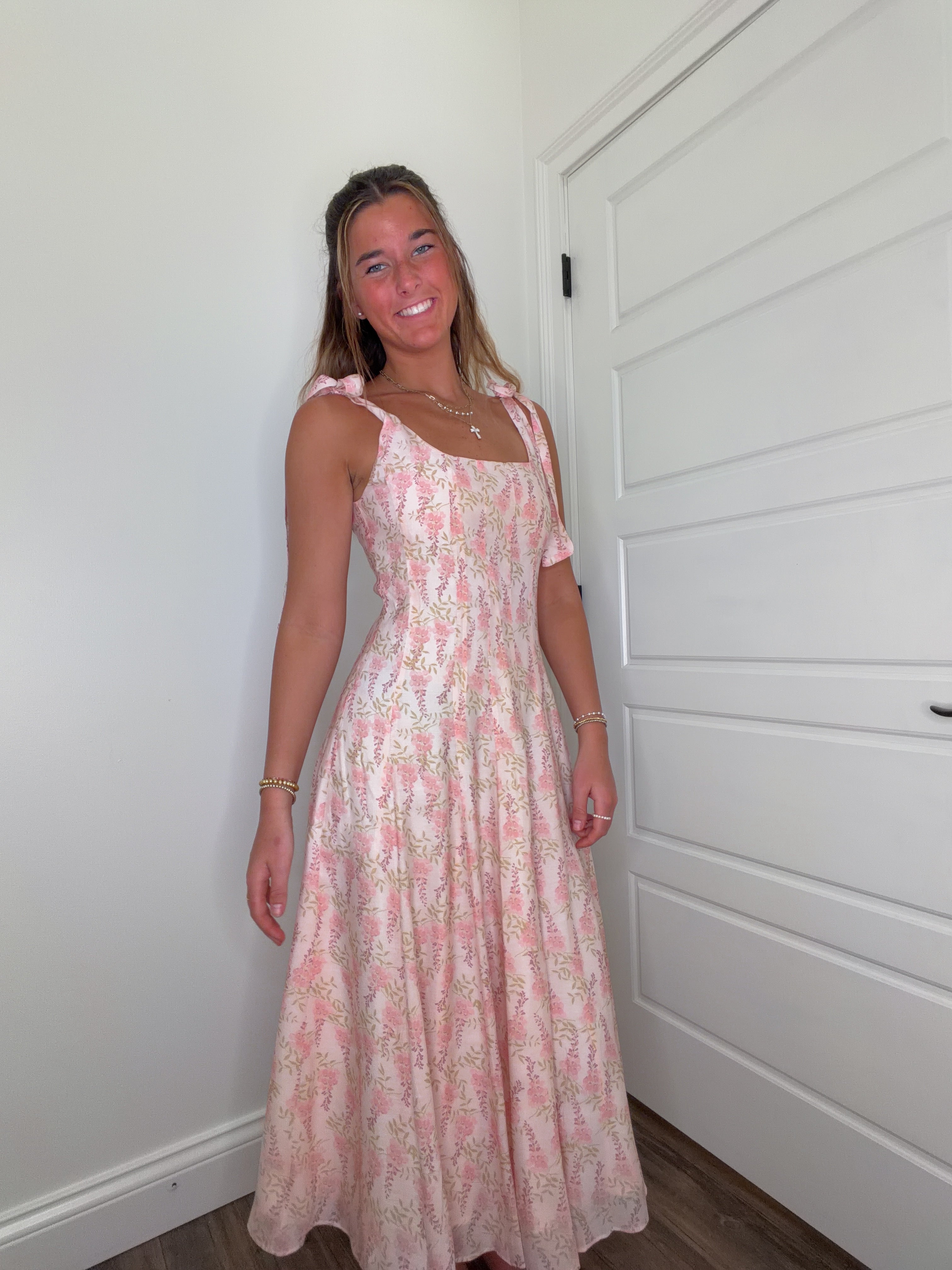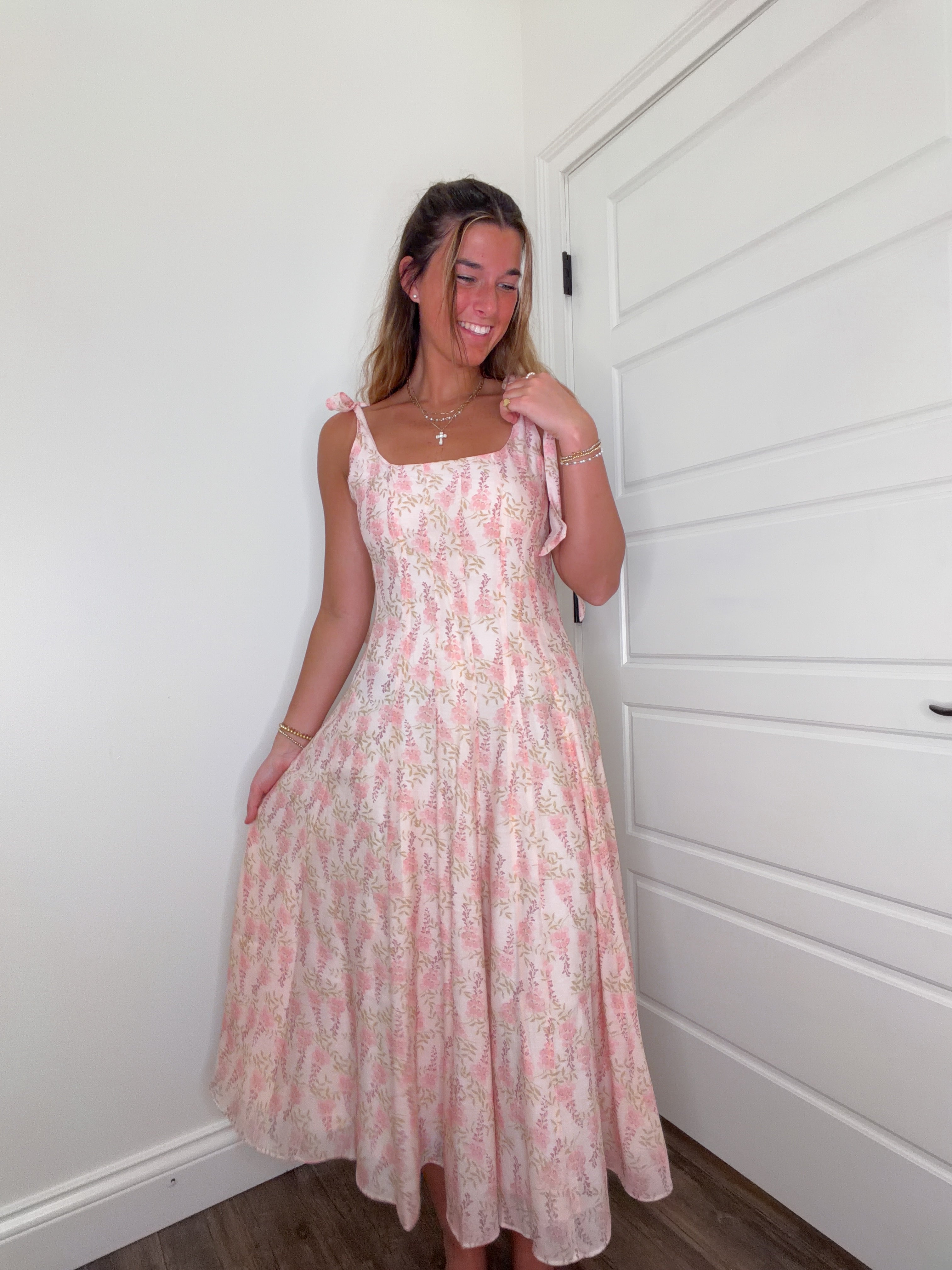 Embrace effortless elegance with The Sweet Sprout Midi, a charming pink floral dress designed for those who love romantic, garden-inspired style. This midi-length piece features delicate floral patterns that bring a fresh, feminine touch to your wardrobe. Perfect for spring gatherings, casual outings, or any occasion calling for understated sophistication. The flowing silhouette offers comfortable wear throughout the day, while the soft pink palette complements a variety of skin tones. A versatile staple that transitions seamlessly from day to evening.